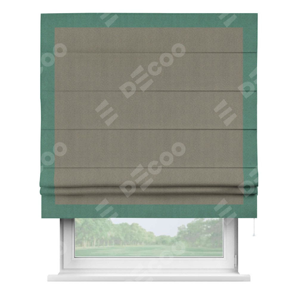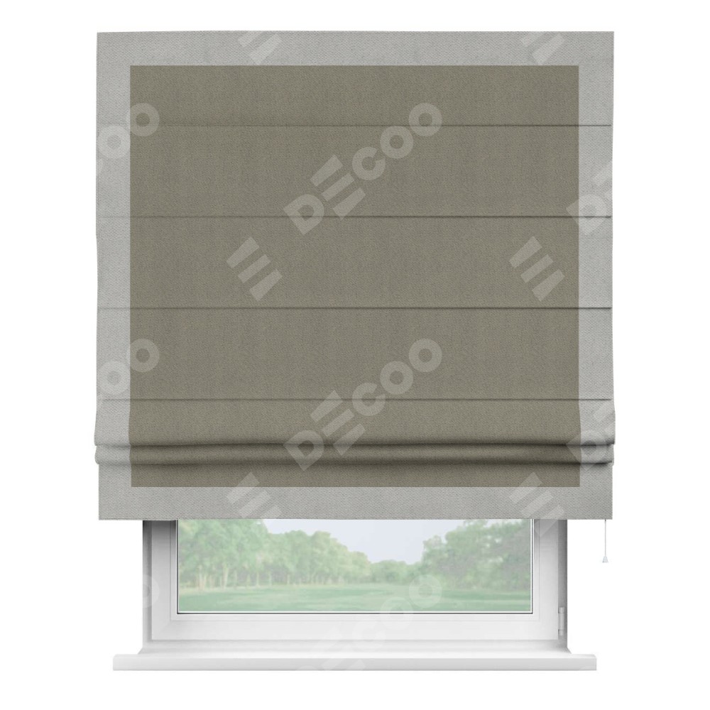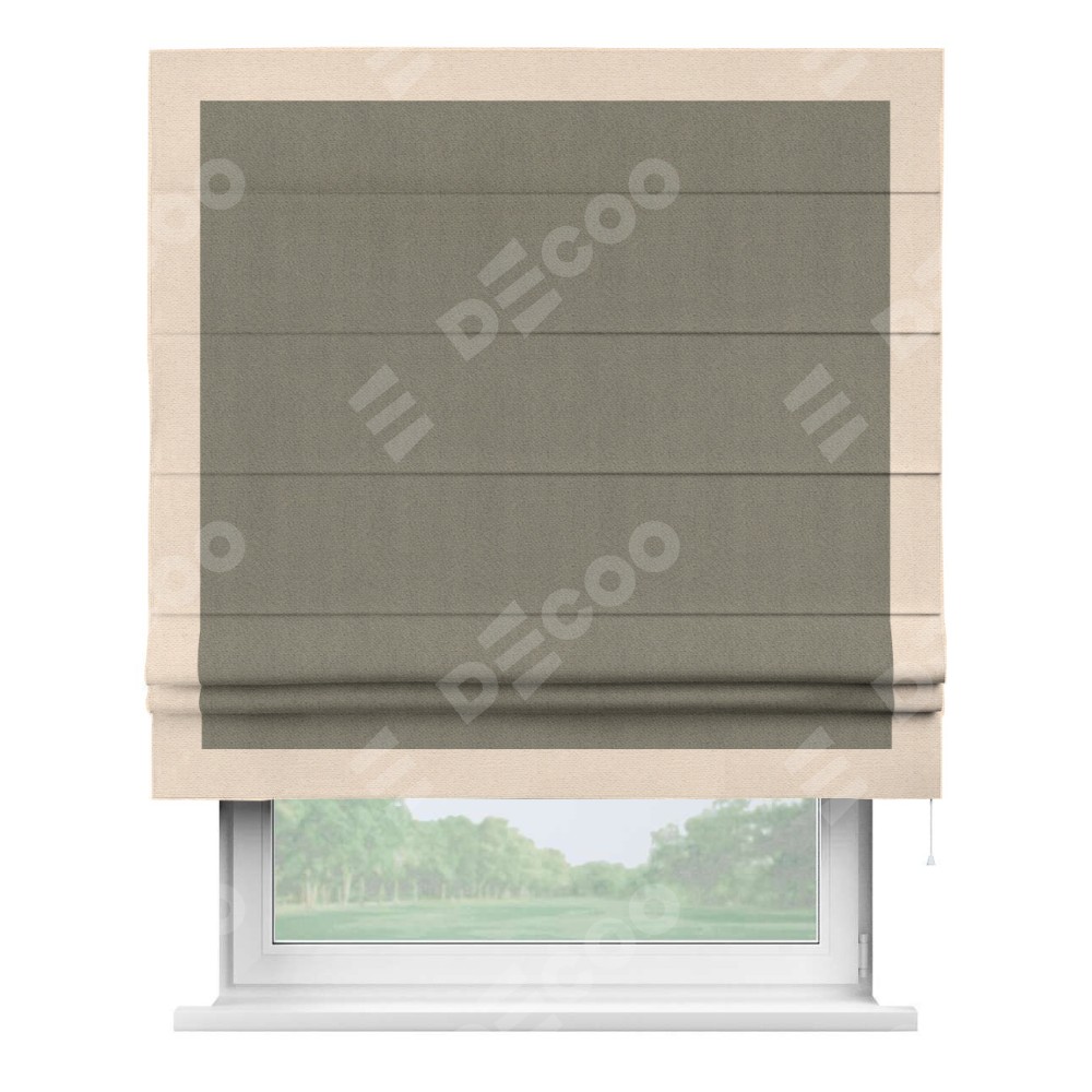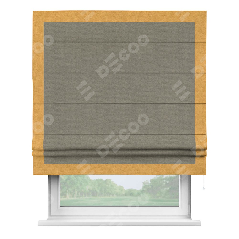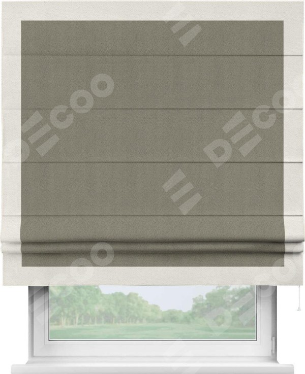 Римская штора производителя «Cortin», используется для проёма, пошита из ткани блэкаут с блеском графитовый, артикул 34648. Отделка шторы кантом «Чесс», ткань для канта используется из блэкаута с блеском разной расцветки на выбор. Изнаночная сторона материала черного цвета, что обеспечивает необходимую светонепроницаемость. Имеет универсальный механизм и подходит для монтажа: на потолок, на стену и в нишу.