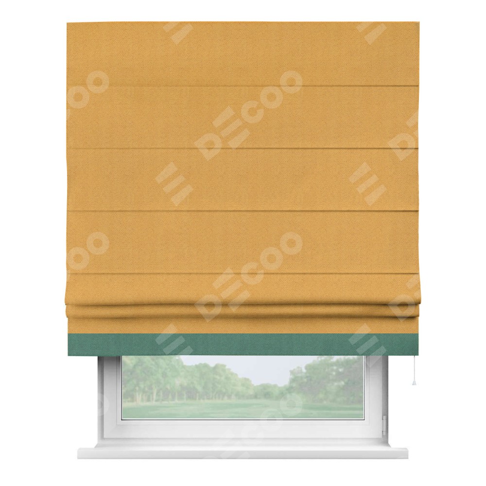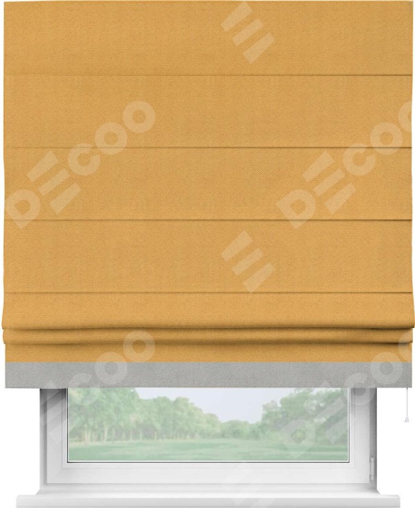 Римская штора «Кортин» с кантом Джестер, для проема, ткань блэкаут с блеском золотой
