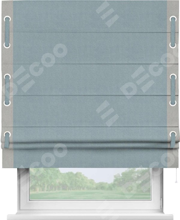 Римская штора «Кортин» с кантом Стрим Дуо (люверсы с пояском), для проема, ткань блэкаут с блеском синий