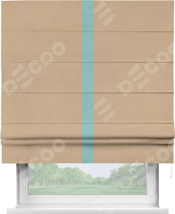 Римская штора «Кортин» с кантом Хайвэй, для проема, ткань вельвет песочный
