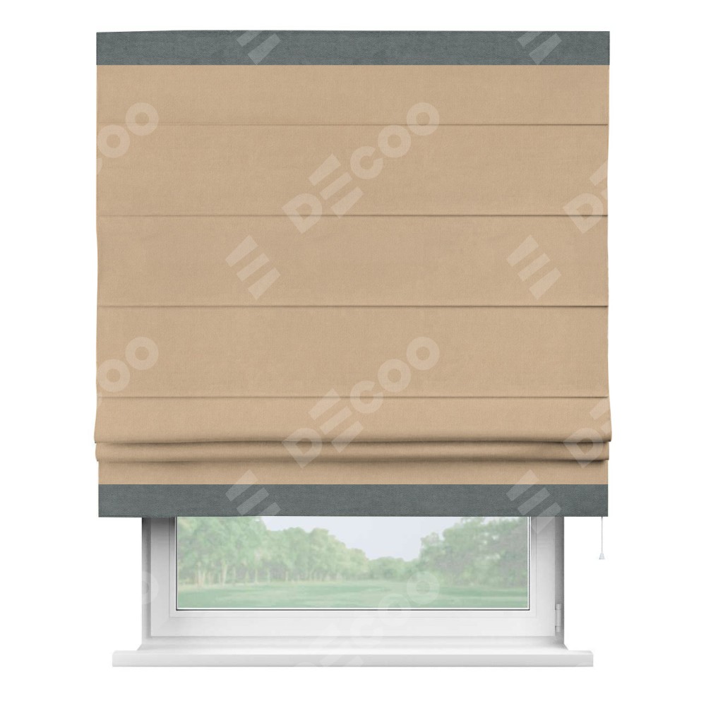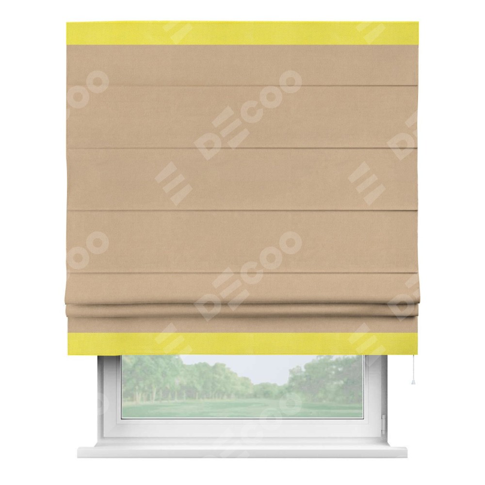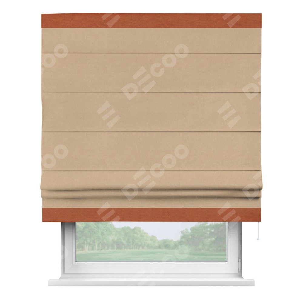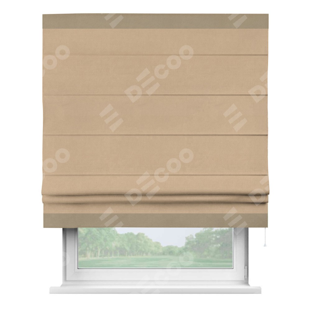 Римская штора «Кортин» с кантом Горизонт, для проема, ткань вельвет песочный