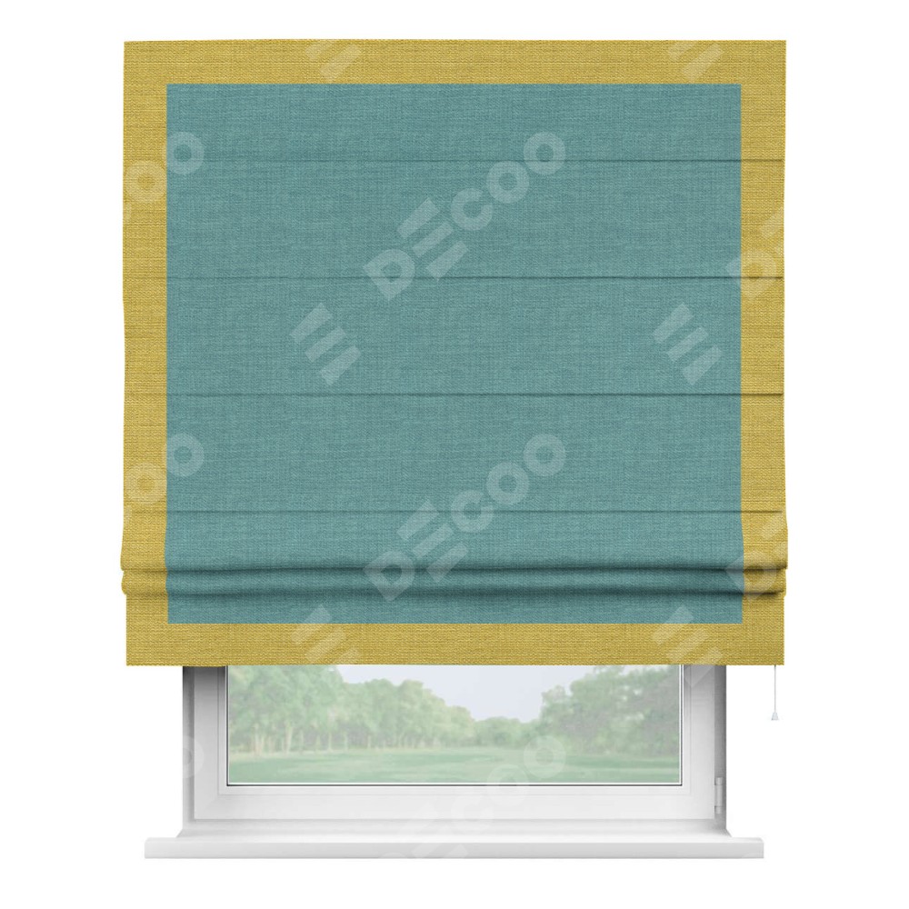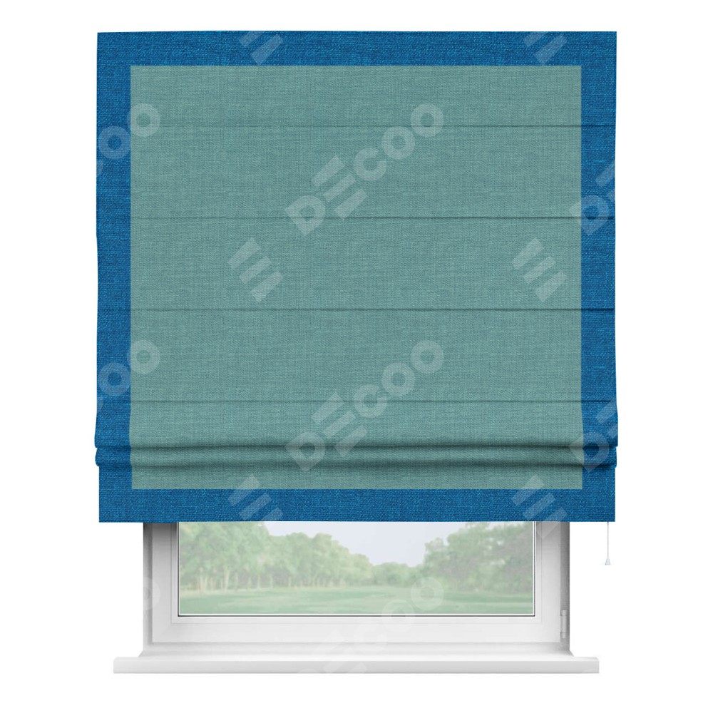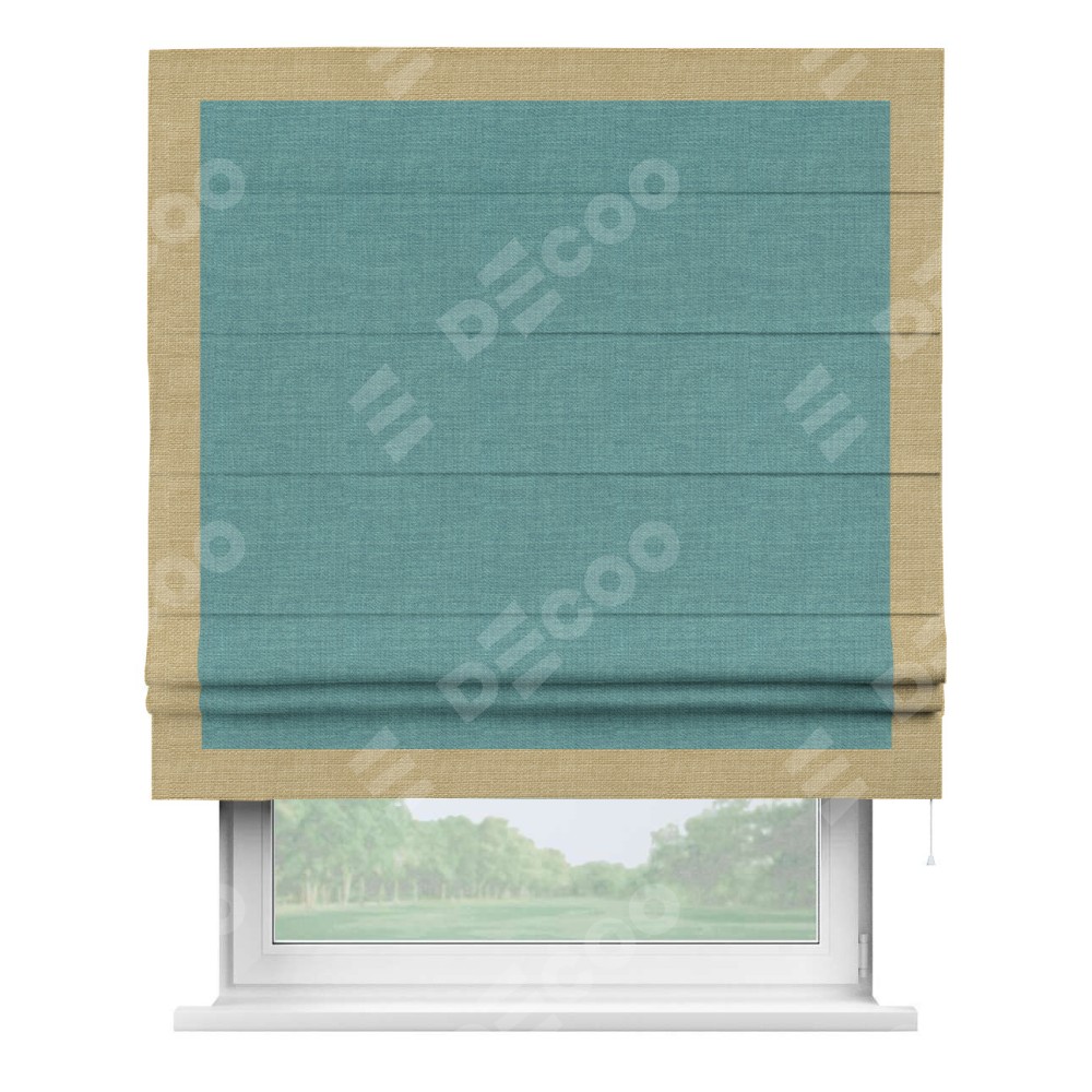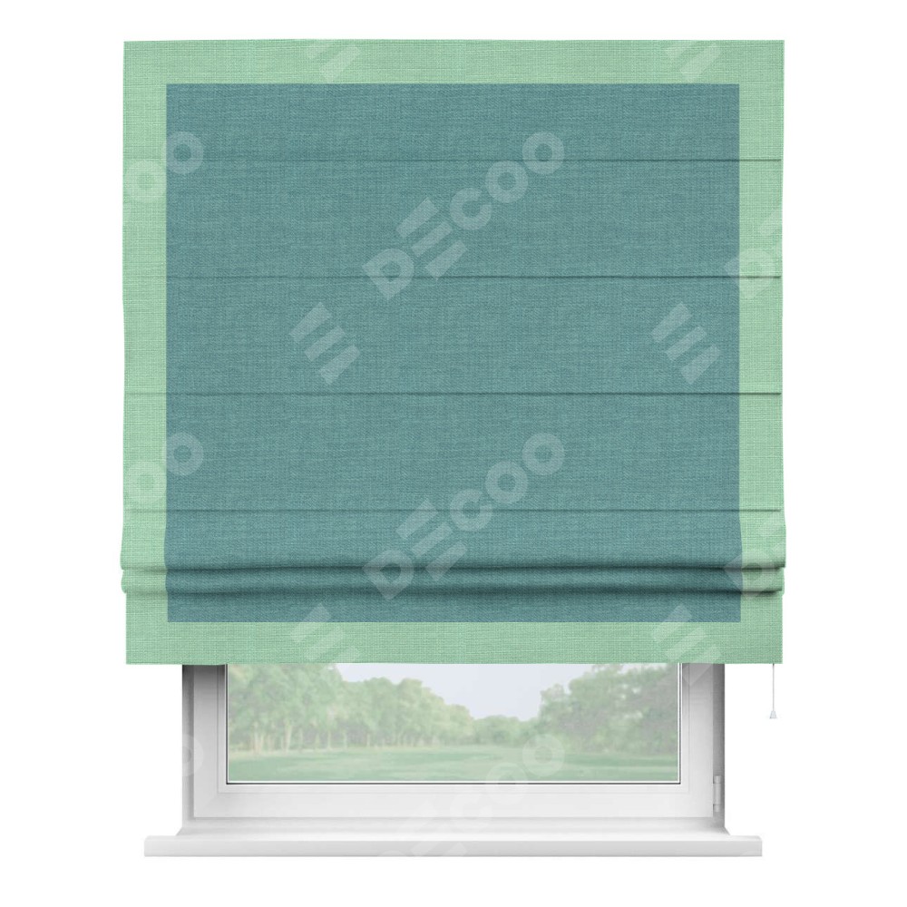 Римская штора «Кортин» с кантом Чесс, для проема, ткань лён бирюза