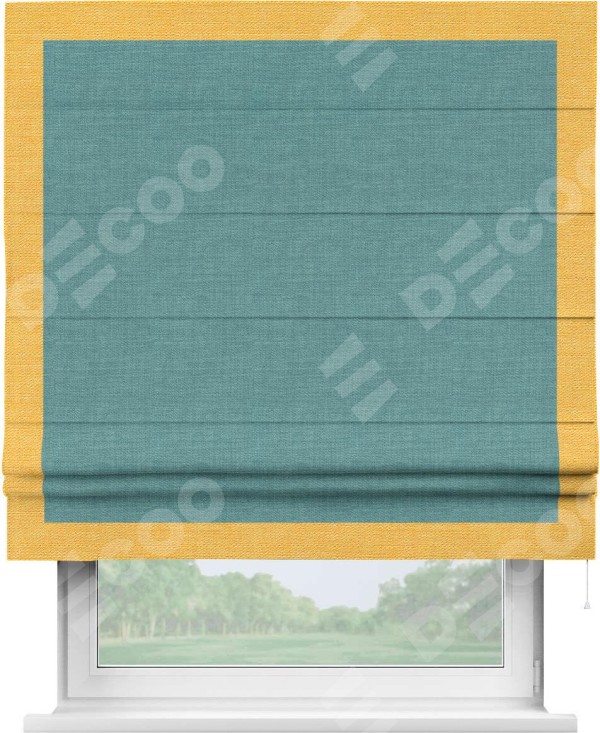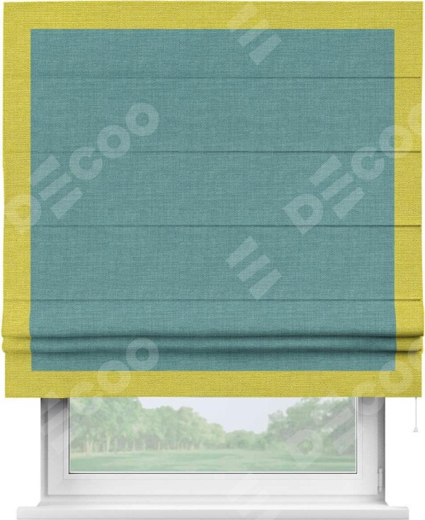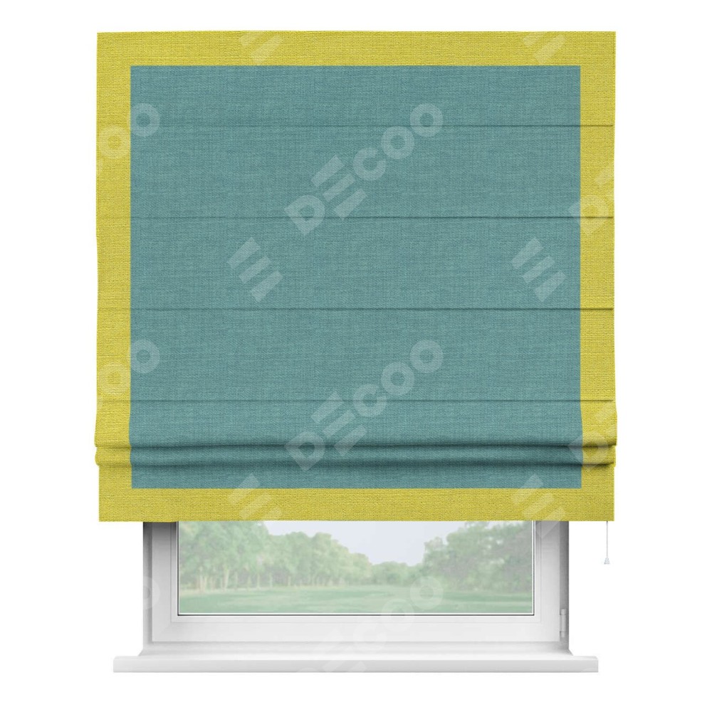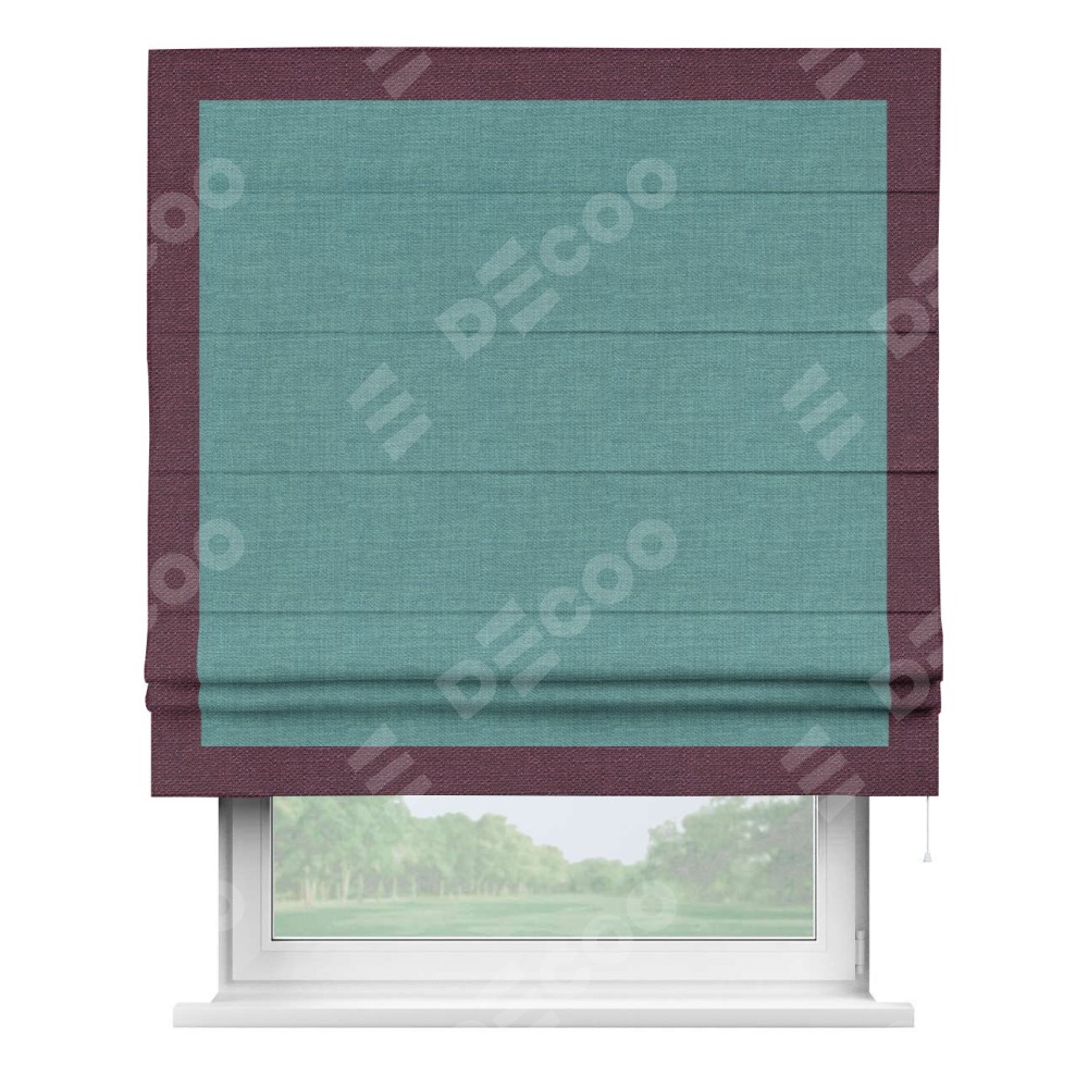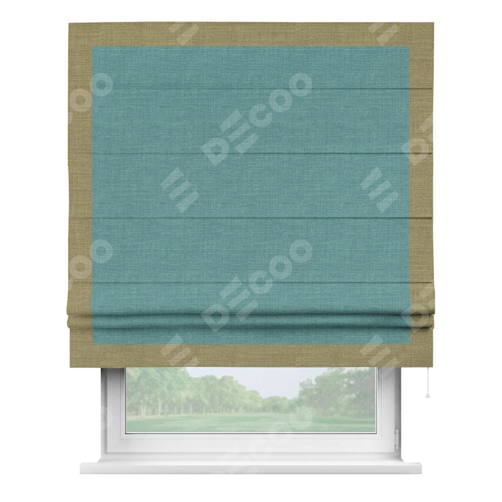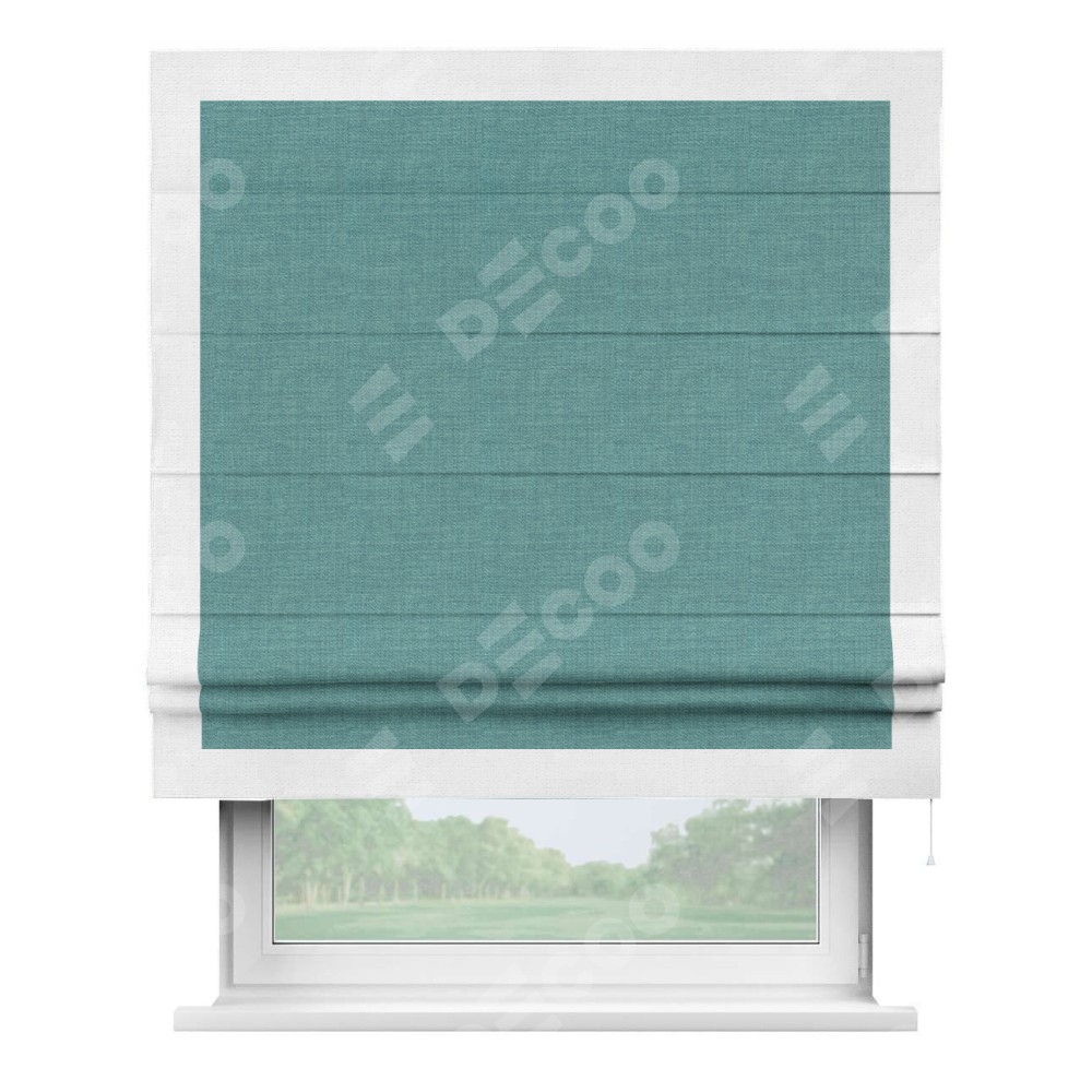 Римская штора «Кортин» с кантом Чесс, для проема, ткань лён бирюза