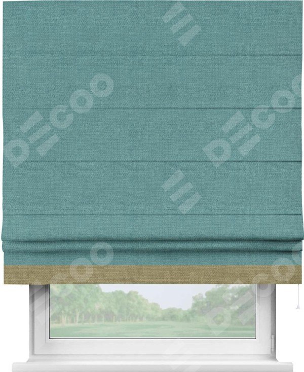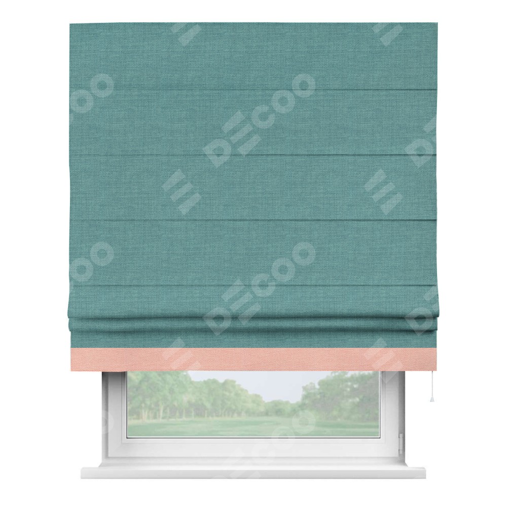 Римская штора «Кортин» с кантом Джестер, для проема, ткань лён бирюза