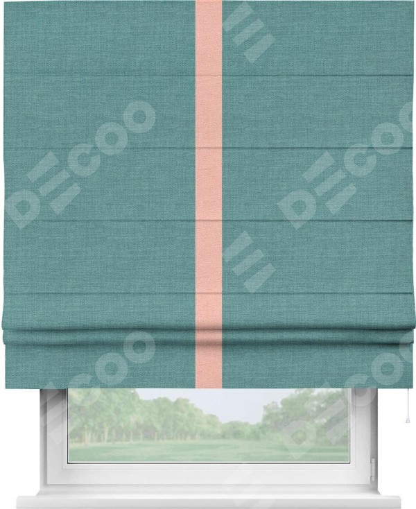 Римская штора «Кортин» с кантом Хайвэй, для проема, ткань лён бирюза