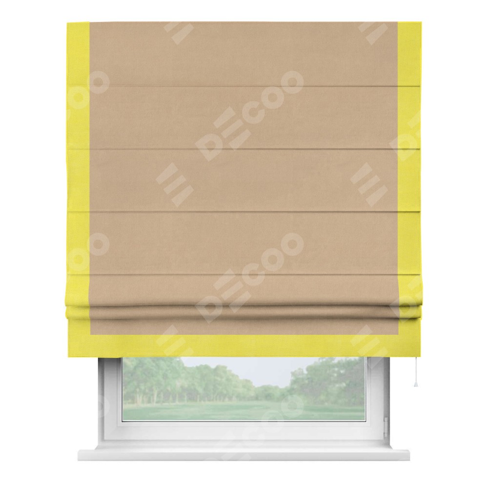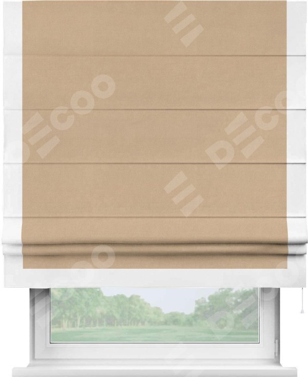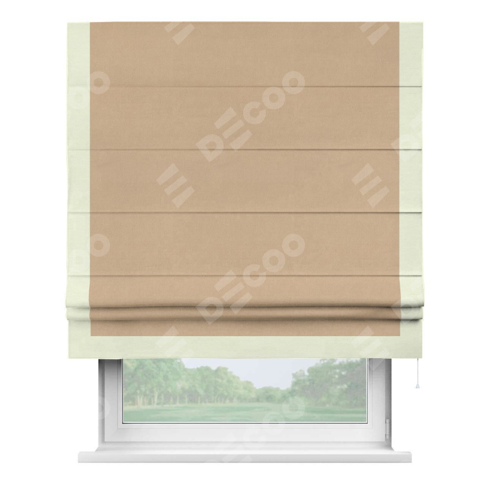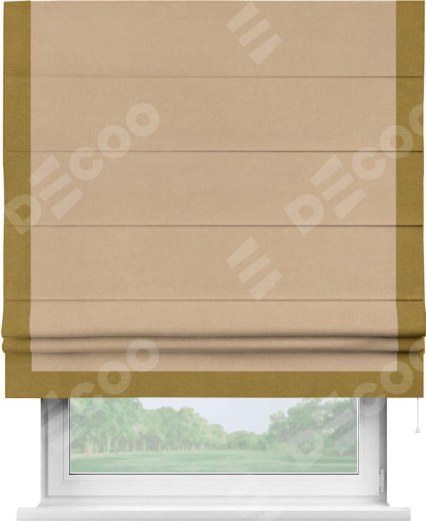 Римская штора «Кортин» с кантом Виктория, для проема, ткань вельвет песочный