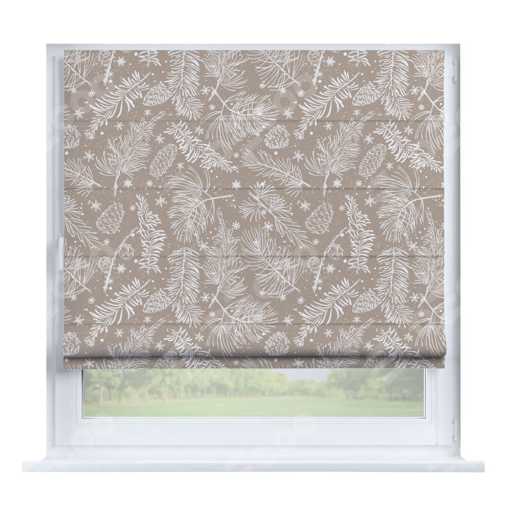 Римская штора производителя «Cortin», устанавливается на створку окна, пошита из ткани блэкаут с нанесением сублимационной печати «Заснеженный лес». Штора шьётся по индивидуальным размерам, для данного типа римской шторы возможная ширина от 35 до 150 см., высота до 250 см.