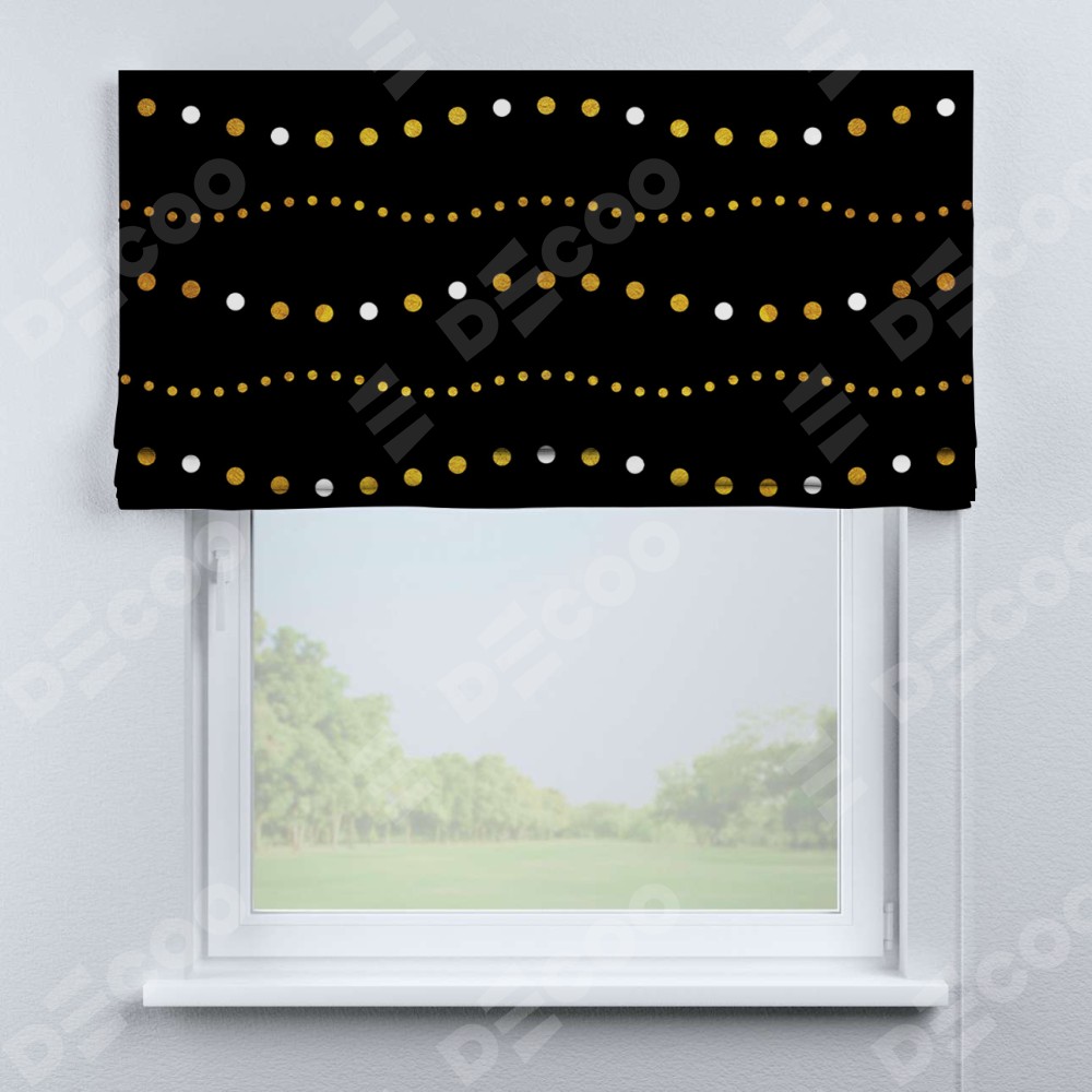 Римская штора производителя «Cortin», используется для проёма, пошита из ткани блэкаут с нанесением сублимационной печати «Яркие огоньки». Имеет универсальный механизм и подходит для монтажа: на потолок, на стену и в нишу.