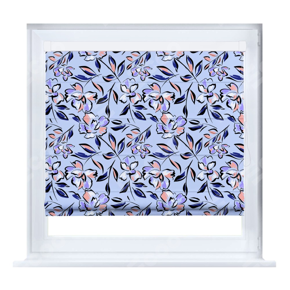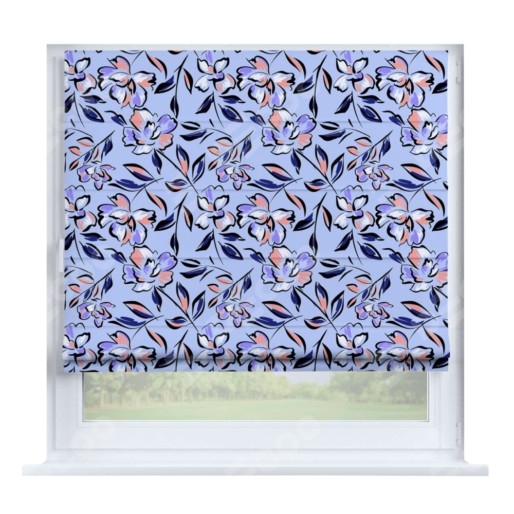 Римская штора производителя «Cortin», устанавливается на створку окна, пошита из ткани блэкаут с нанесением сублимационной печати «Цветочки и листочки». Штора шьётся по индивидуальным размерам, для данного типа римской шторы возможная ширина от 35 до 150 см., высота до 250 см.