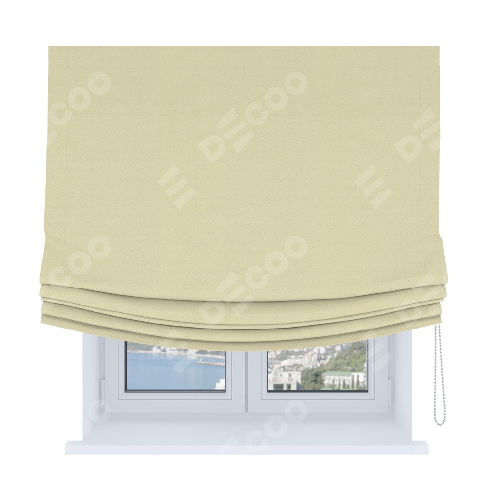 Римская штора Soft производителя «Cortin», используется для проёма, пошита из ткани блэкаут однотонный бежевый, артикул ткани 88283. Имеет универсальный механизм и подходит для монтажа: на потолок, на стену и в нишу. В отличие от стандартных римских штор, римская штора Soft не имеет горизонтальных вставок и нижнего отвеса. Это позволяет ткани произвольно драпироваться в свободные мягкие складки.