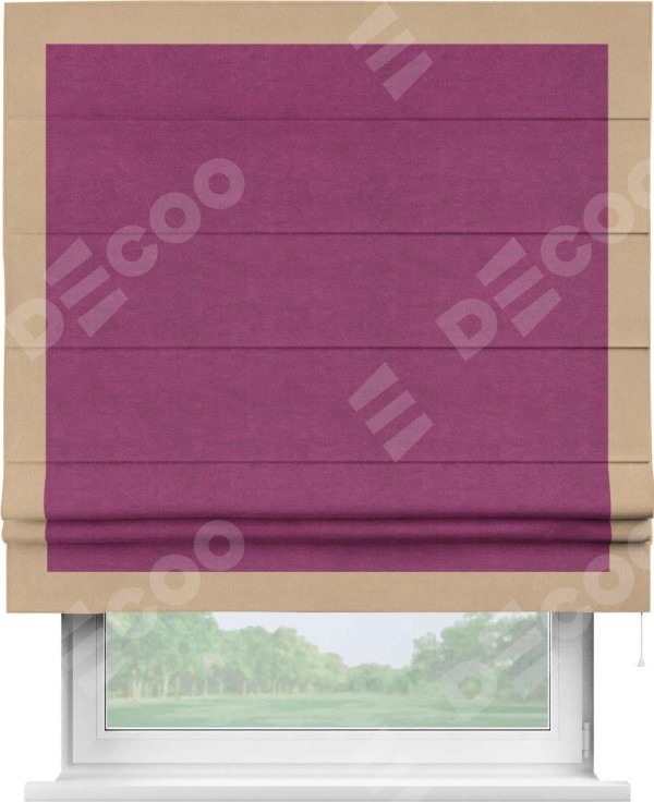 Римская штора «Кортин» с кантом Чесс, для проема, ткань вельвет фиолетовый