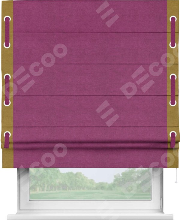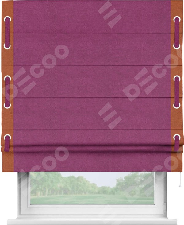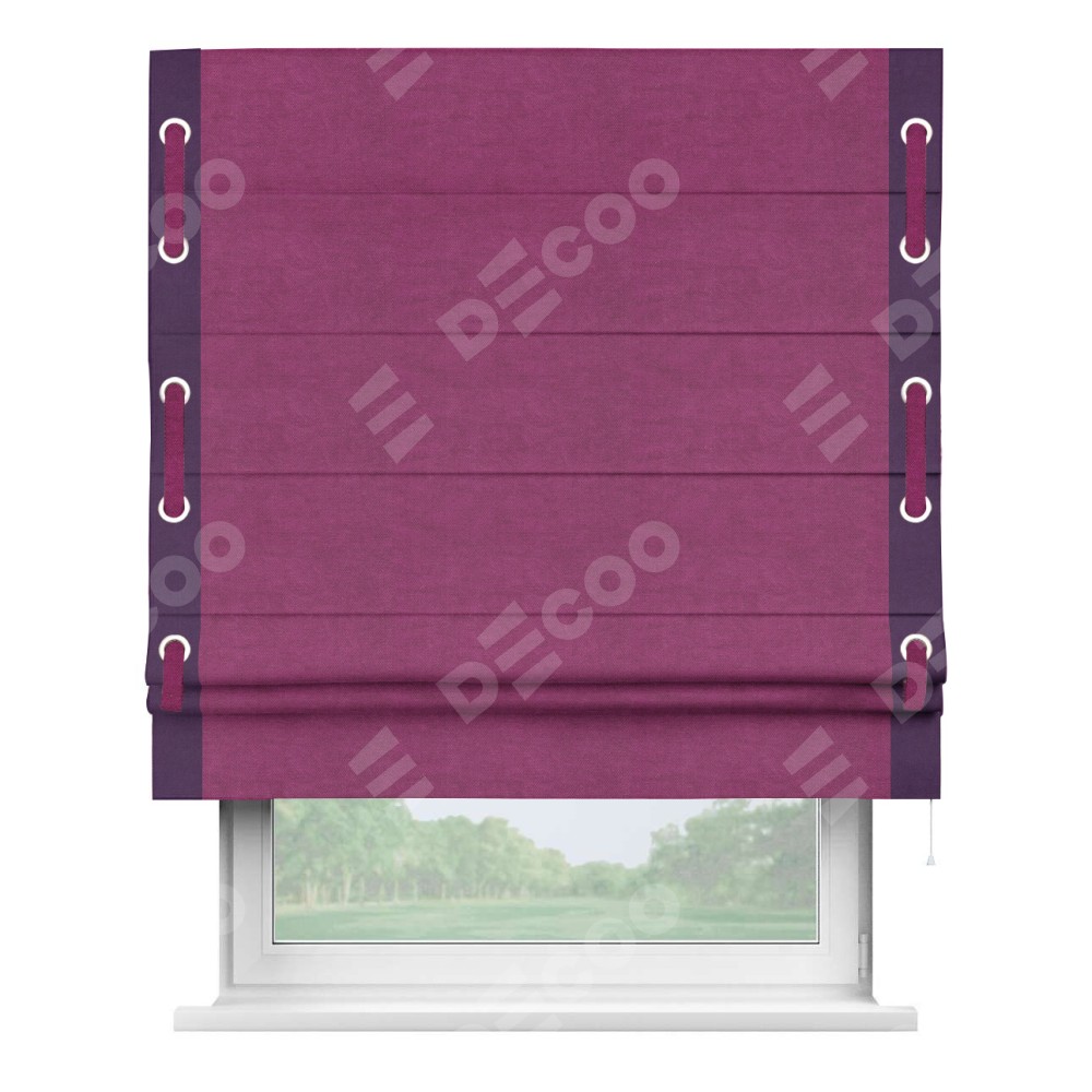 Римская штора «Кортин» с кантом Стрим Дуо (люверсы с пояском), для проема, ткань вельвет фиолетовый