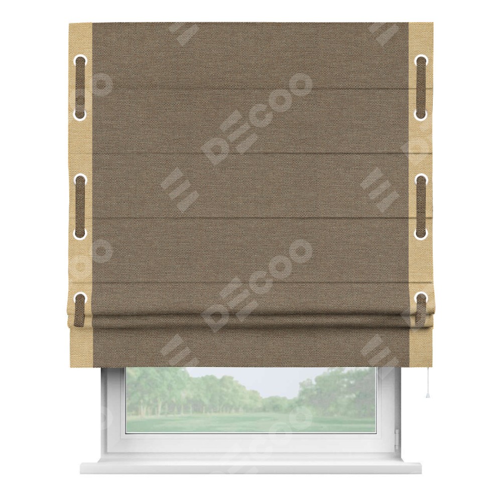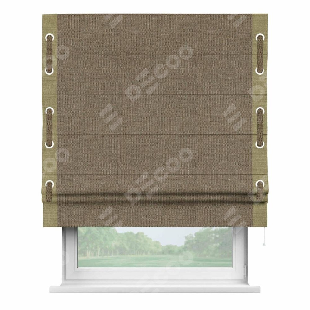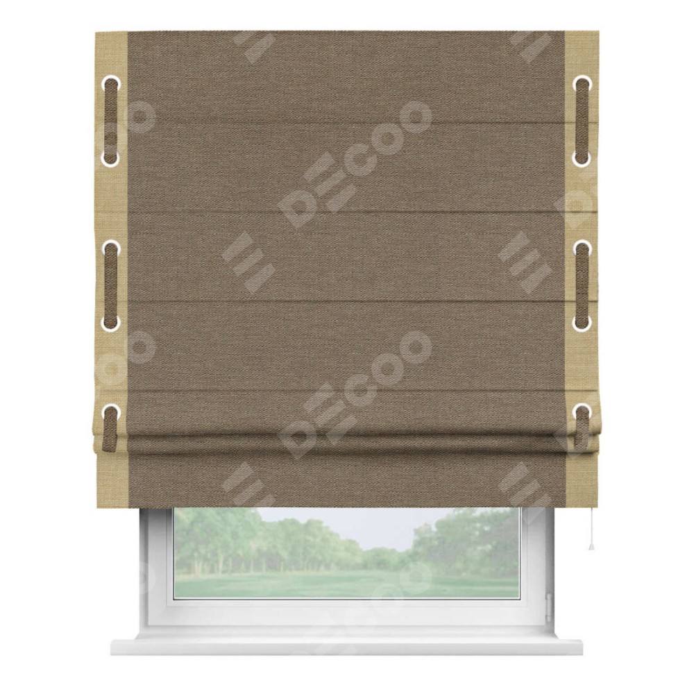 Римская штора «Кортин» с кантом Стрим Дуо (люверсы с пояском), для проема, ткань лён светло-коричневый