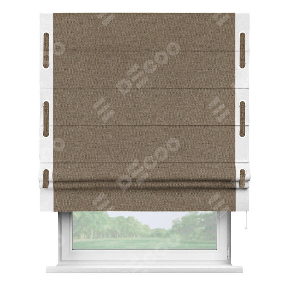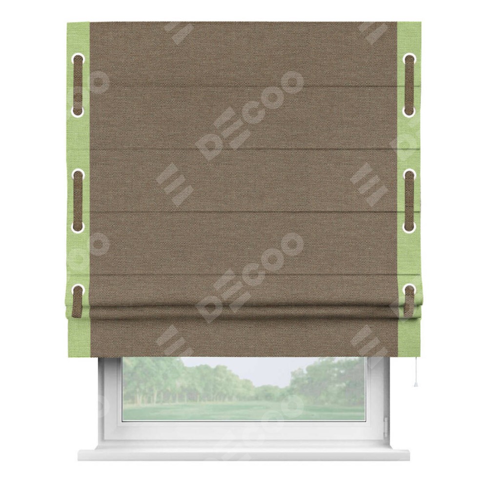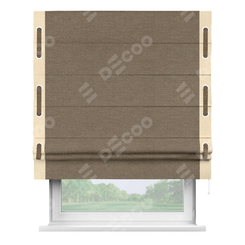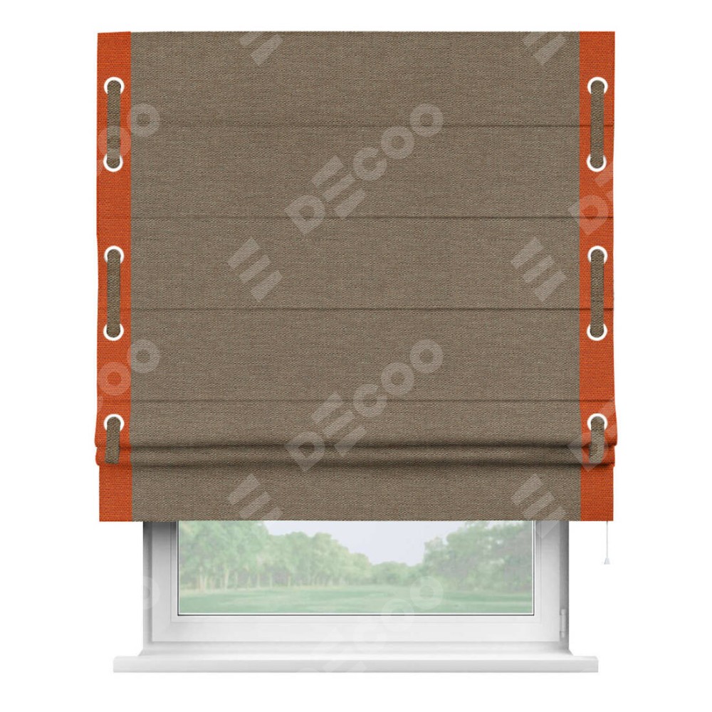Римская штора «Кортин» с кантом Стрим Дуо (люверсы с пояском), для проема, ткань лён светло-коричневый