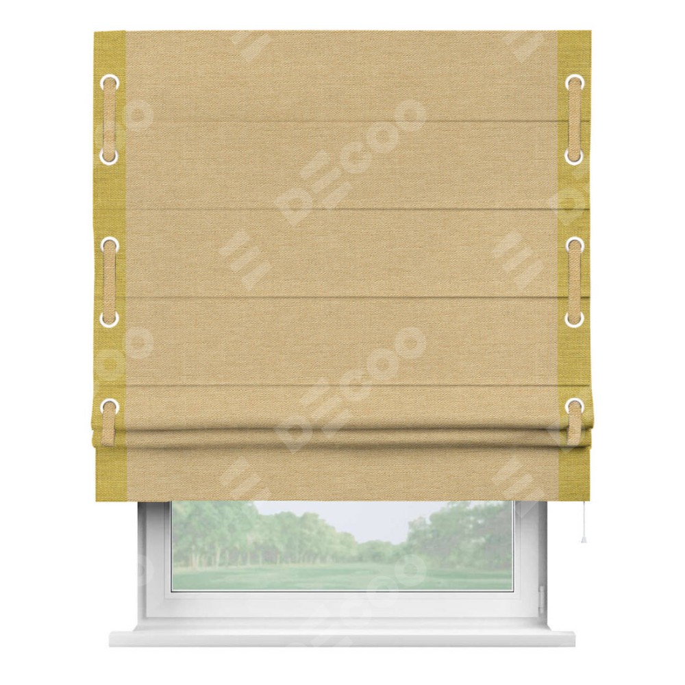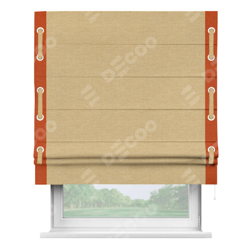 Римская штора «Кортин» с кантом Стрим Дуо (люверсы с пояском), для проема, ткань лён темно-бежевый