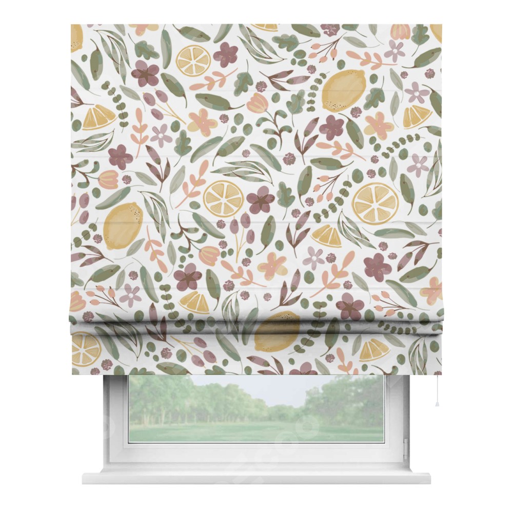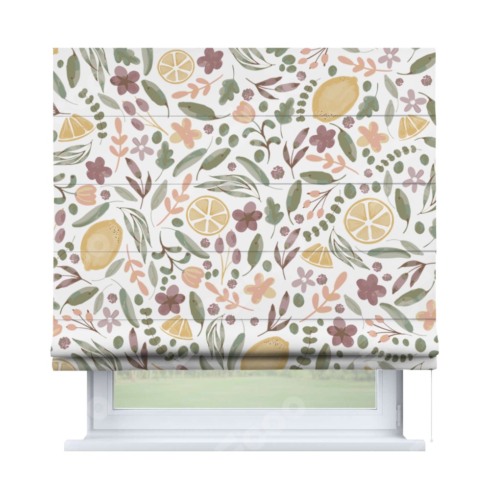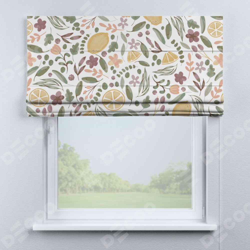 Римская штора «Кортин» для проема «Лимоны и цветы»