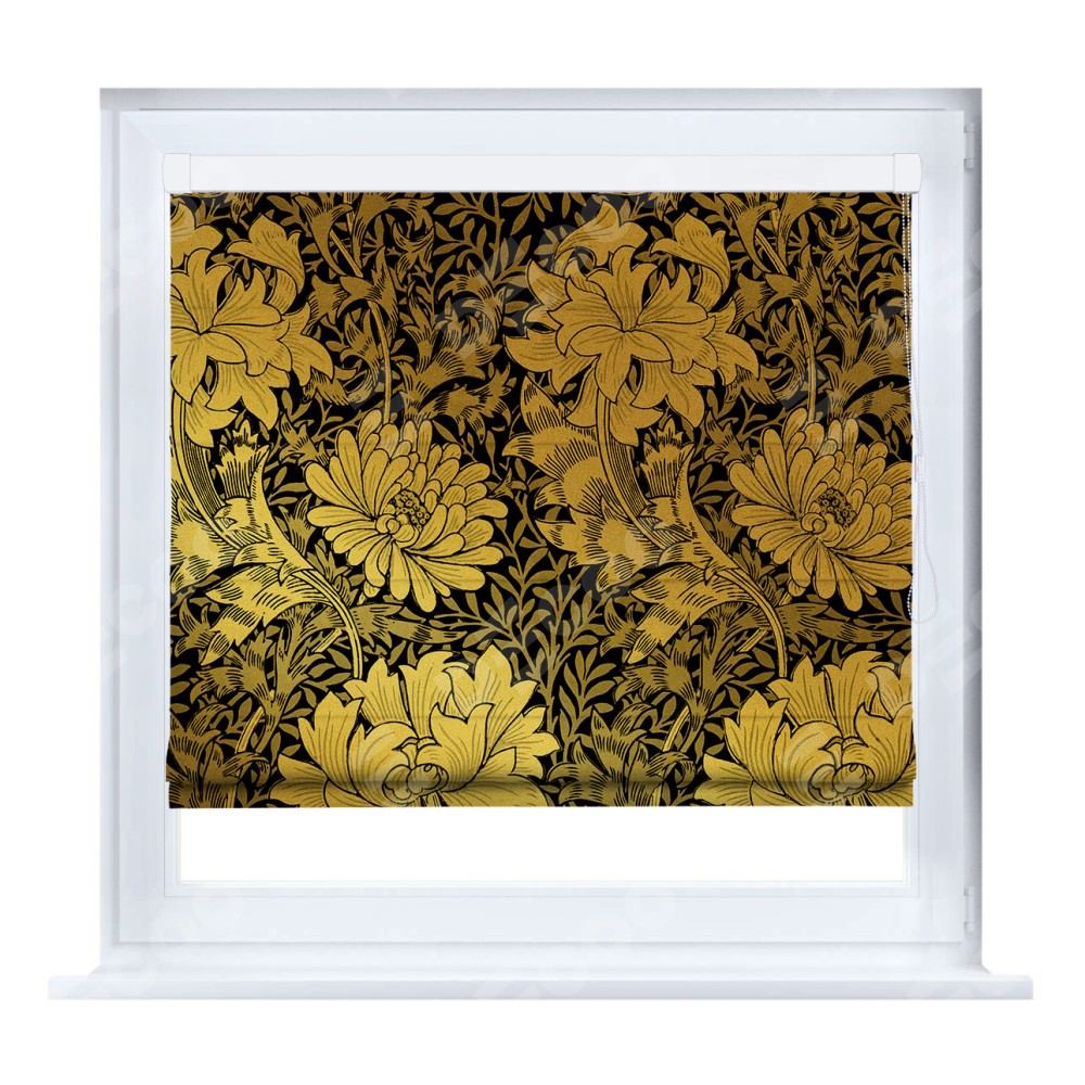Римская штора кассетного типа, производителя «Cortin», устанавливается только на пластиковые окна и прилегает к стеклопакету, пошита из ткани блэкаут с нанесением сублимационной печати «Ремикс морриса».