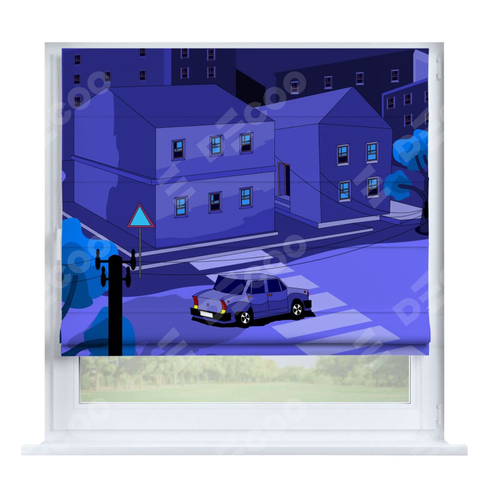 Римская штора производителя «Cortin», устанавливается на створку окна, пошита из ткани блэкаут с нанесением сублимационной печати «Ночные улицы». Штора шьётся по индивидуальным размерам, для данного типа римской шторы возможная ширина от 35 до 150 см., высота до 250 см.