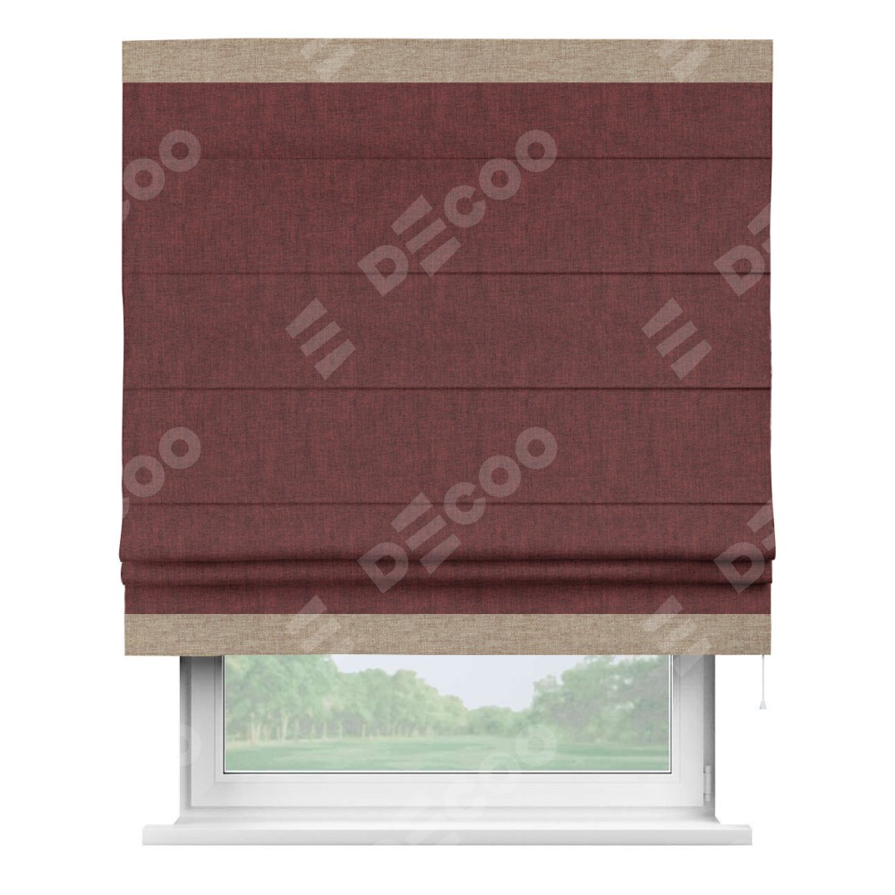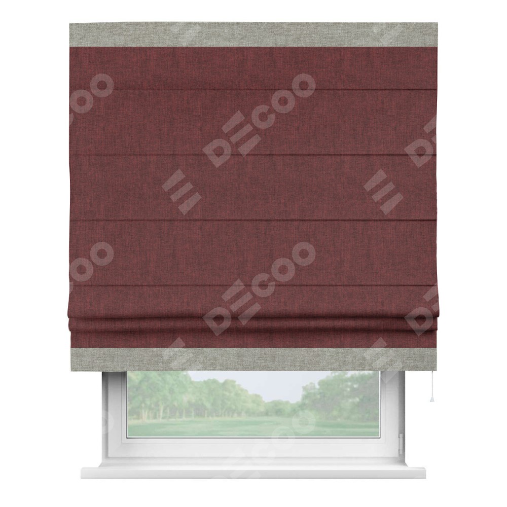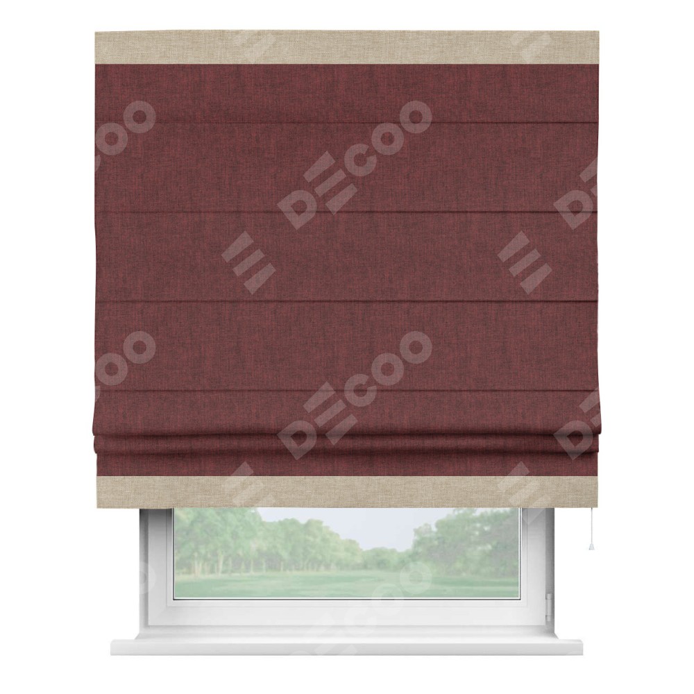 Римская штора «Кортин» с кантом Горизонт, для проема, ткань лён кашемир бордовый