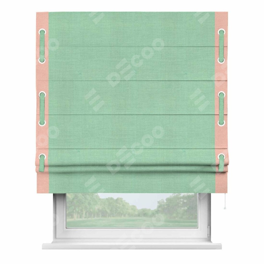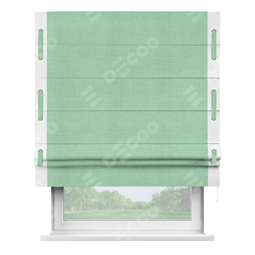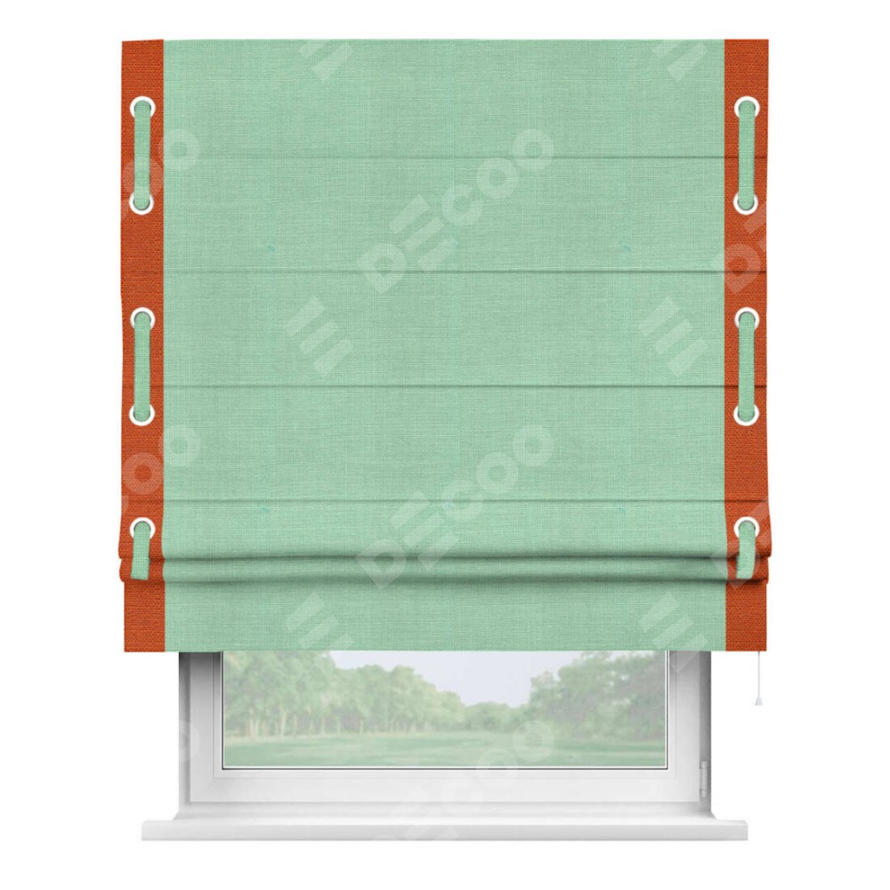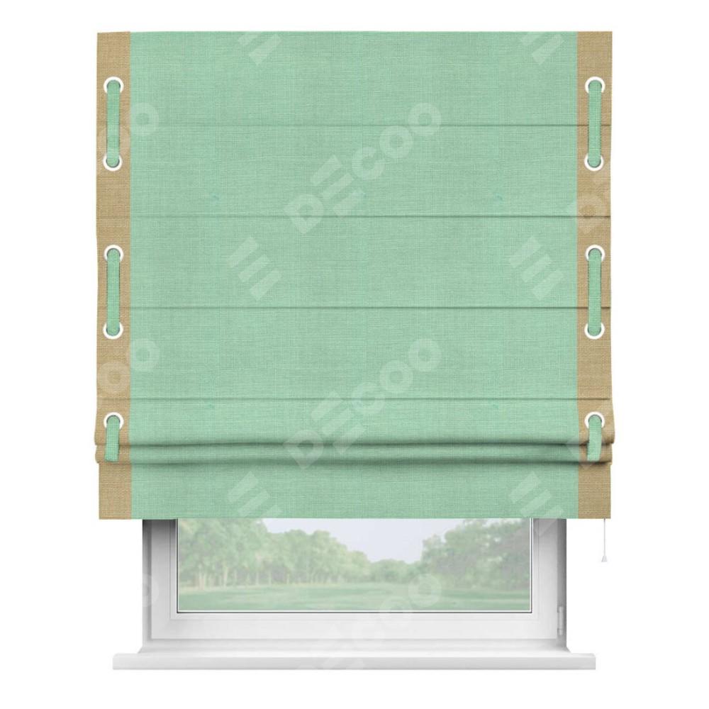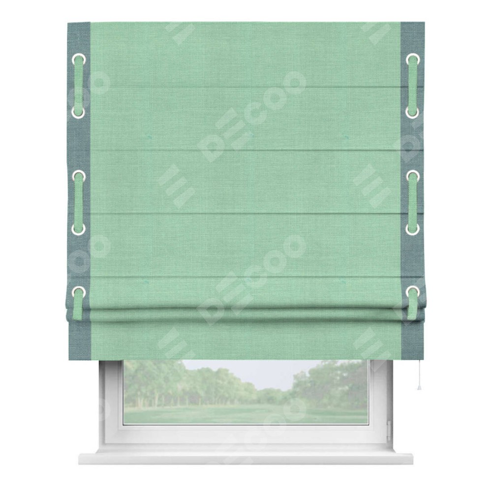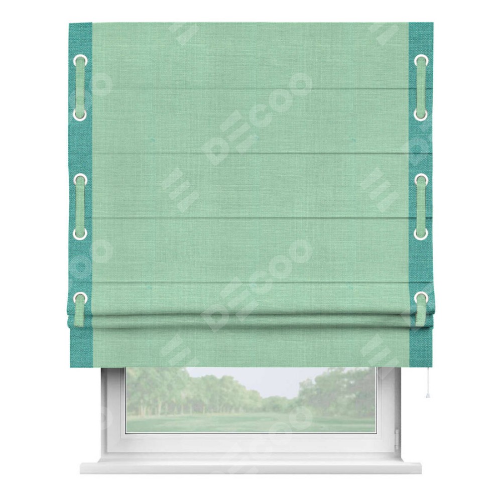 Римская штора «Кортин» с кантом Стрим Дуо (люверсы с пояском), для проема, ткань лён светло-бирюзовый