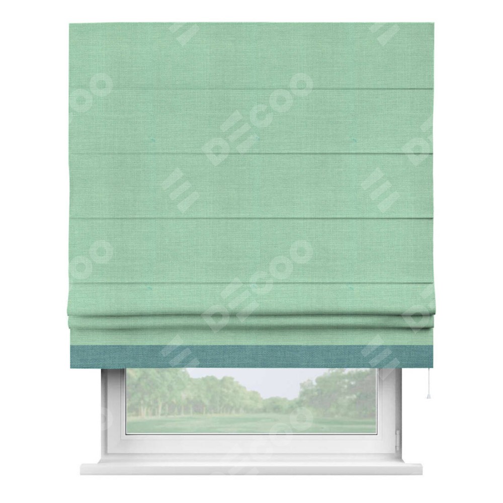 Римская штора «Кортин» с кантом Джестер, для проема, ткань лён светло-бирюзовый