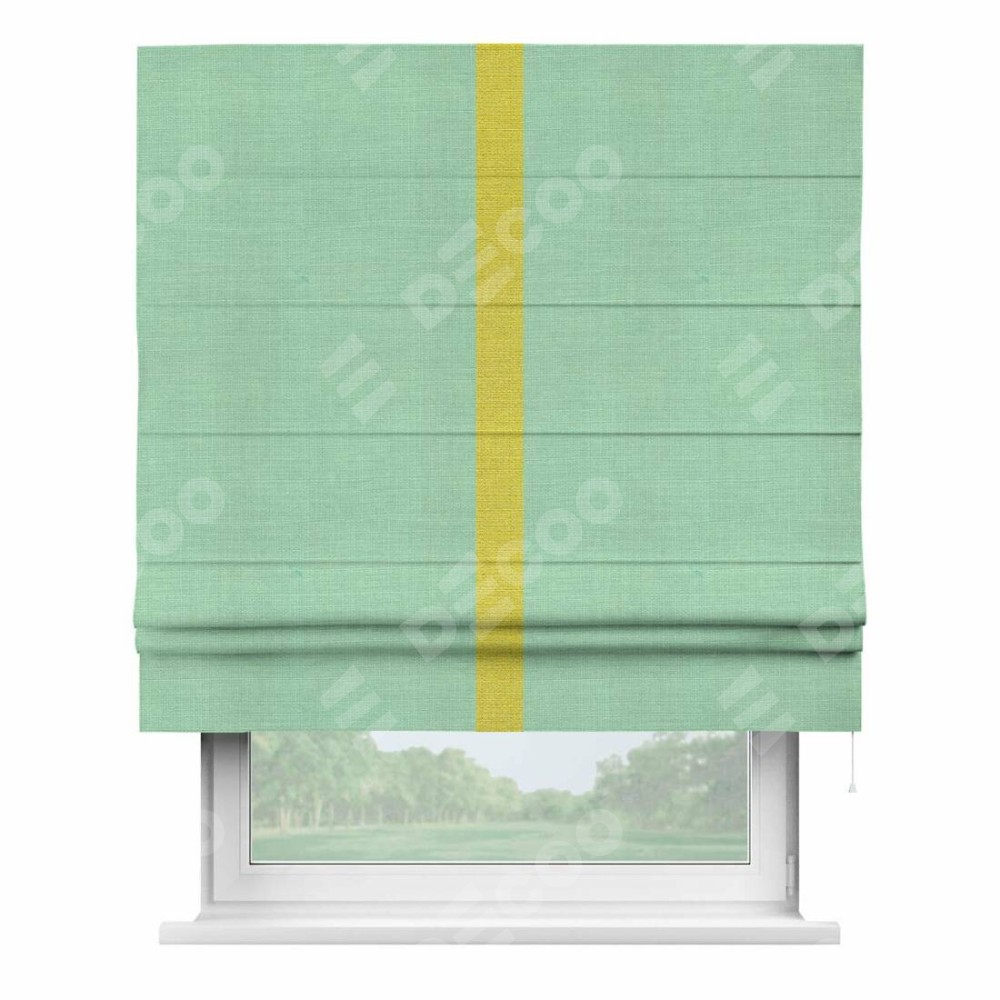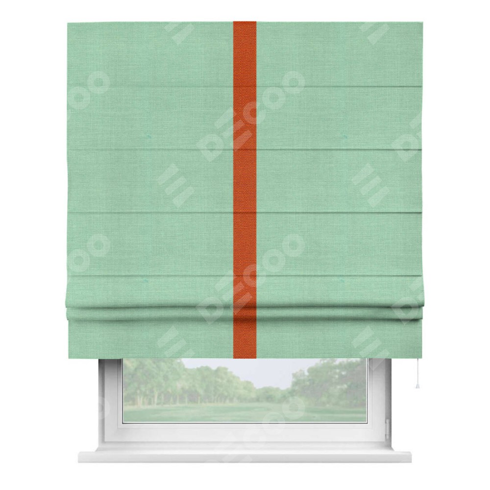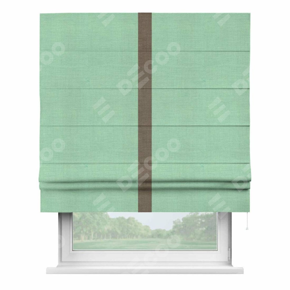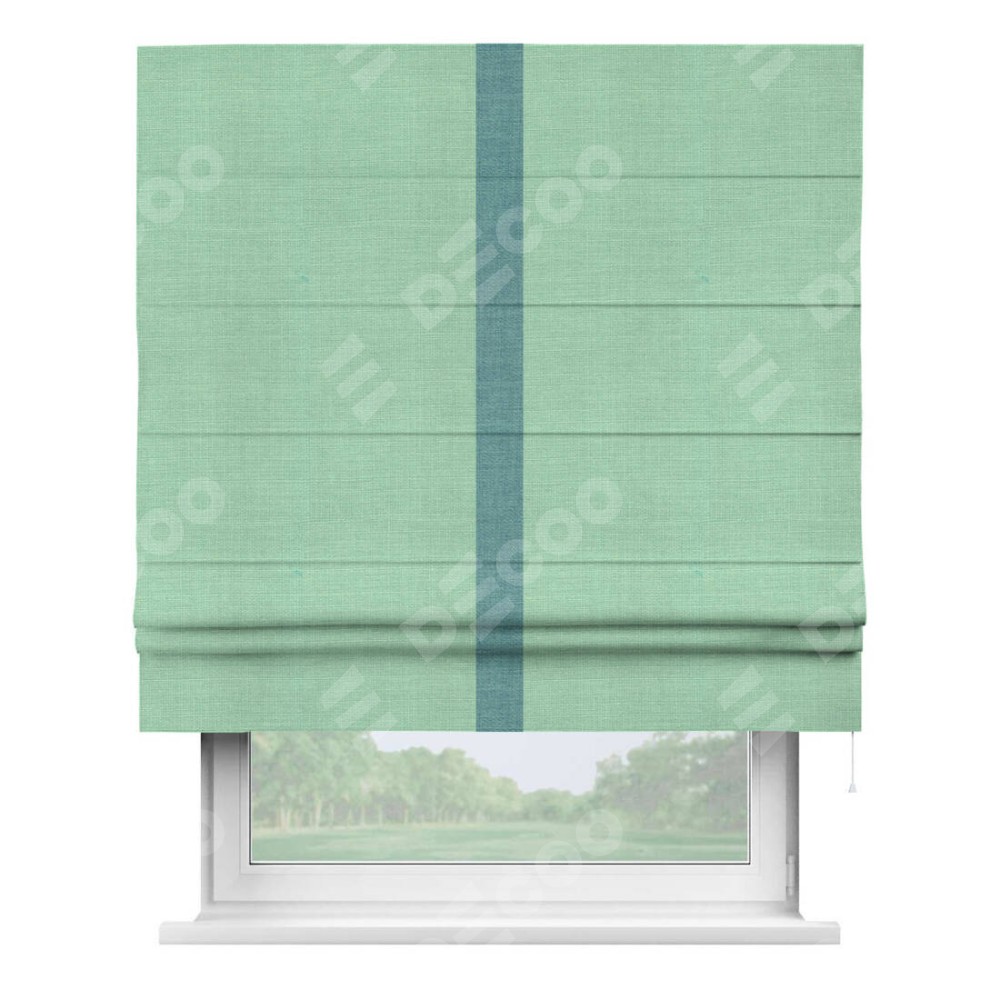 Римская штора «Кортин» с кантом Хайвэй, для проема, ткань лён светло-бирюзовый