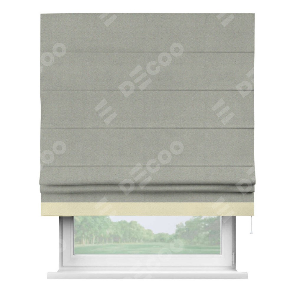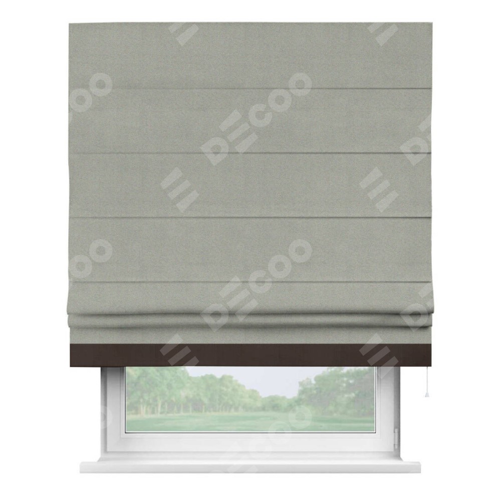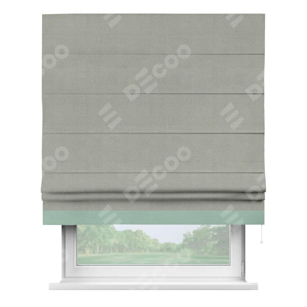 Римская штора производителя «Cortin», используется для проёма, пошита из ткани блэкаут однотонный серый, артикул ткани 88292. Отделка шторы кантом «Джестер», ткань для канта используется из блэкаута однотонного разной расцветки на выбор. Имеет универсальный механизм и подходит для монтажа: на потолок, на стену и в нишу.