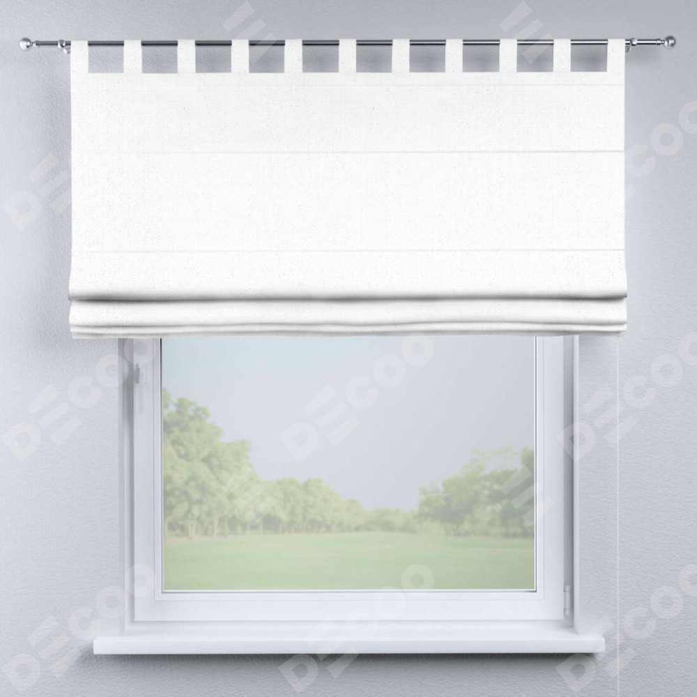 Римская штора производителя «Cortin», используется для проёма, пошита из ткани лён белый, артикул ткани 7439. Данная модель пошита на петлях, комплектуется на выбор круглым карнизом и подходит для монтажа на стену. Римская штора на петлях имеет простую систему регулировки высоты, отличительным преимуществом данной модели является простой способ монтажа. Достаточно повесить ее на трубу и штора готова!