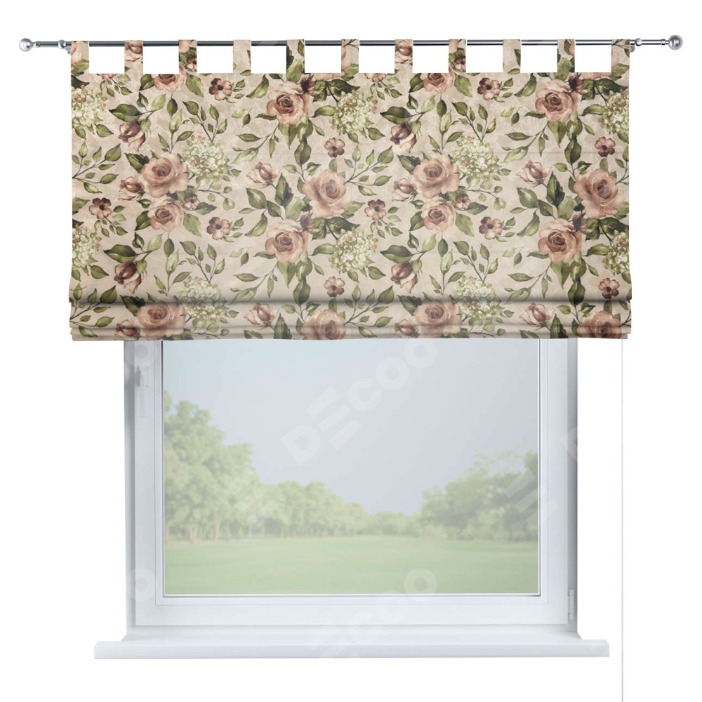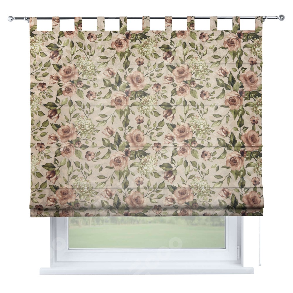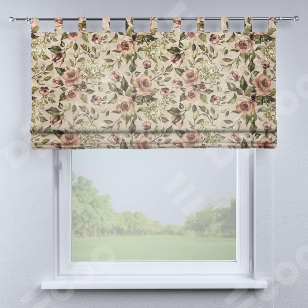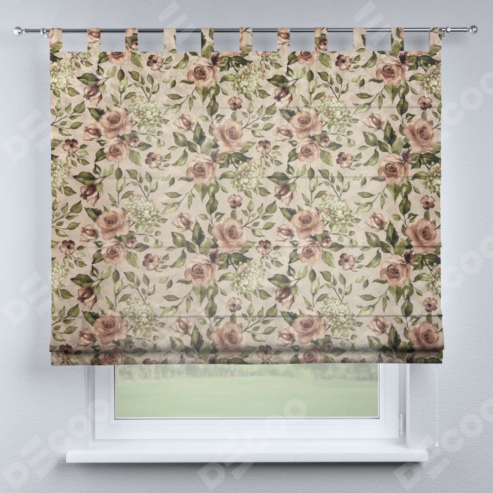 Римская штора на петлях «Кортин», ткань «Розы бежевые»