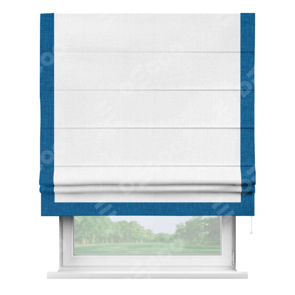Римская штора производителя «Cortin», используется для проёма, пошита из ткани лён белоснежный, артикул 7438. Отделка шторы кантом «Виктория», ткань для канта используется из льна разной расцветки на выбор. Имеет универсальный механизм и подходит для монтажа: на потолок, на стену и в нишу.