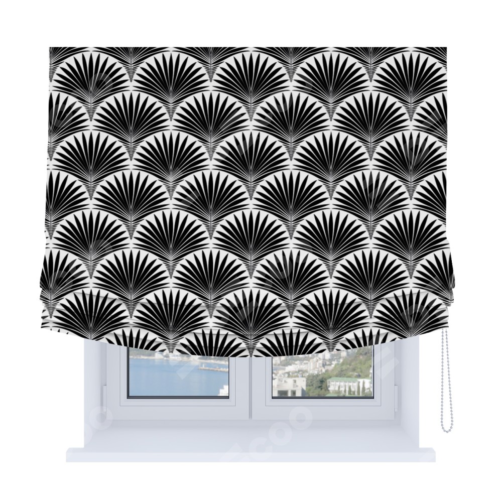 Римская штора Soft с мягкими складками, «Арт-деко листья черный»
