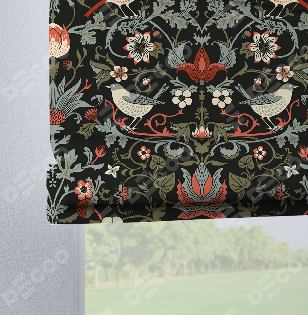 Римская штора производителя «Cortin», используется для проёма, пошита из ткани блэкаут с нанесением сублимационной печати «Зачарованные птицы». Данная модель пошита на петлях, комплектуется на выбор круглым карнизом и подходит для монтажа на стену. Римская штора на петлях имеет простую систему регулировки высоты, отличительным преимуществом данной модели является простой способ монтажа. Достаточно повесить ее на трубу и штора готова!