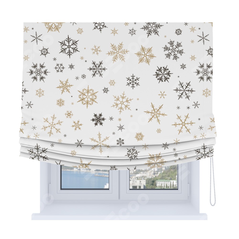 Римская штора Soft производителя «Cortin», используется для проёма, пошита из ткани блэкаут с нанесением сублимационной печати «Зимняя метель». Имеет универсальный механизм и подходит для монтажа: на потолок, на стену и в нишу. В отличие от стандартных римских штор, римская штора Soft не имеет горизонтальных вставок и нижнего отвеса. Это позволяет ткани произвольно драпироваться в свободные мягкие складки.