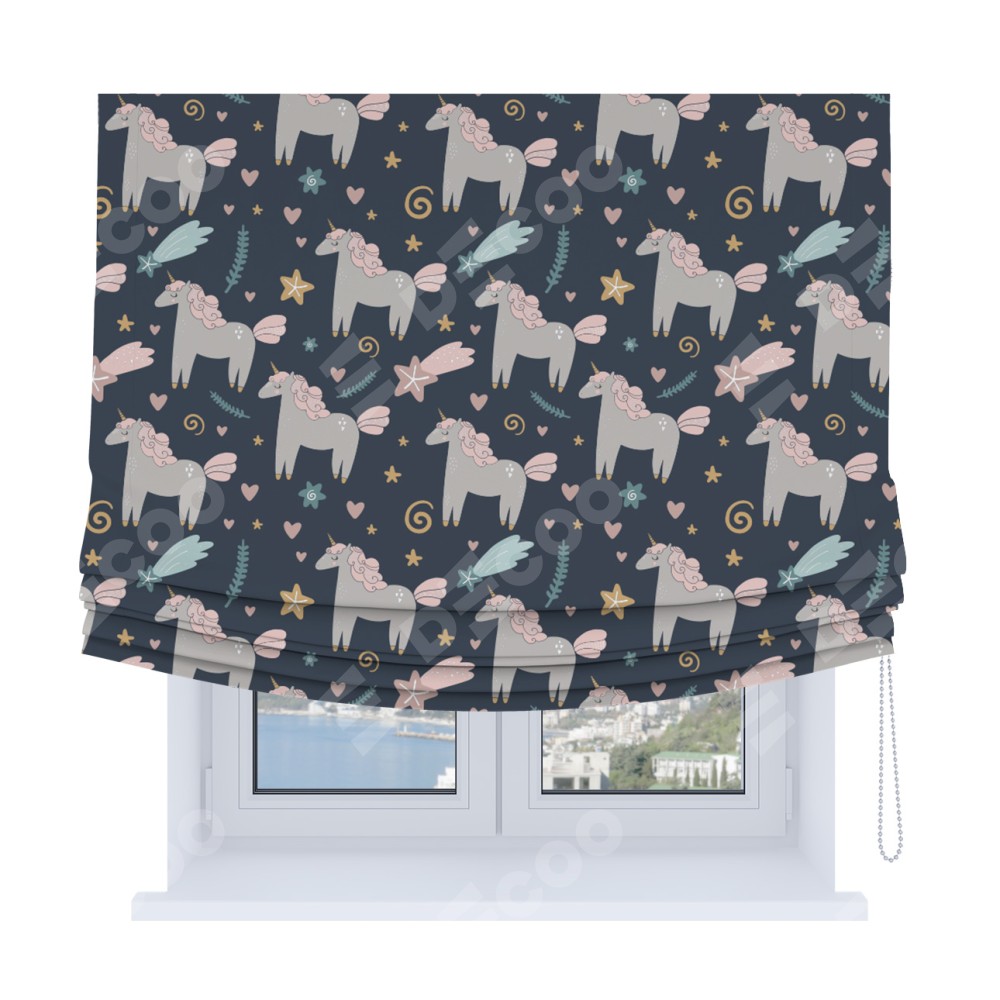 Римская штора Soft с мягкими складками, «Милые единороги»