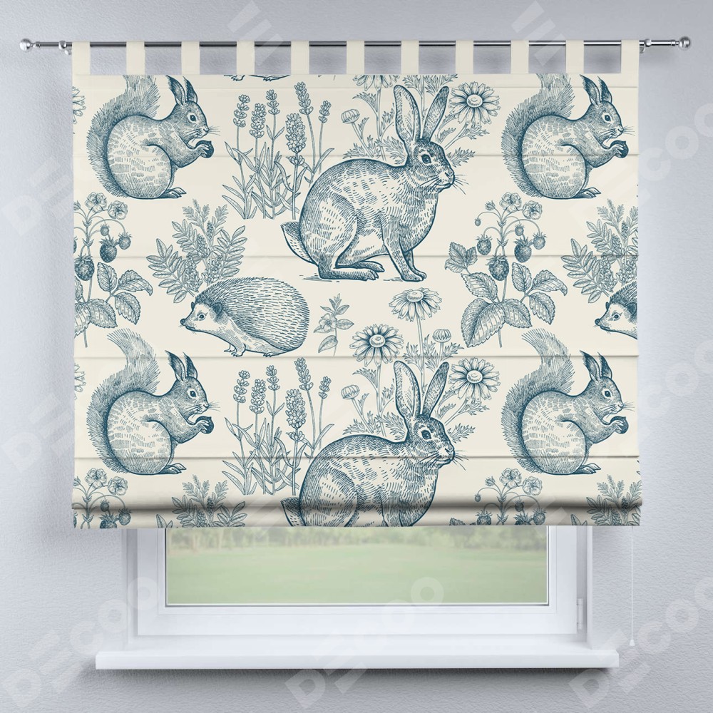 Римская штора производителя «Cortin», используется для проёма, пошита из ткани блэкаут с нанесением сублимационной печати «На лугу». Данная модель пошита на петлях, комплектуется на выбор круглым карнизом и подходит для монтажа на стену. Римская штора на петлях имеет простую систему регулировки высоты, отличительным преимуществом данной модели является простой способ монтажа. Достаточно повесить ее на трубу и штора готова!