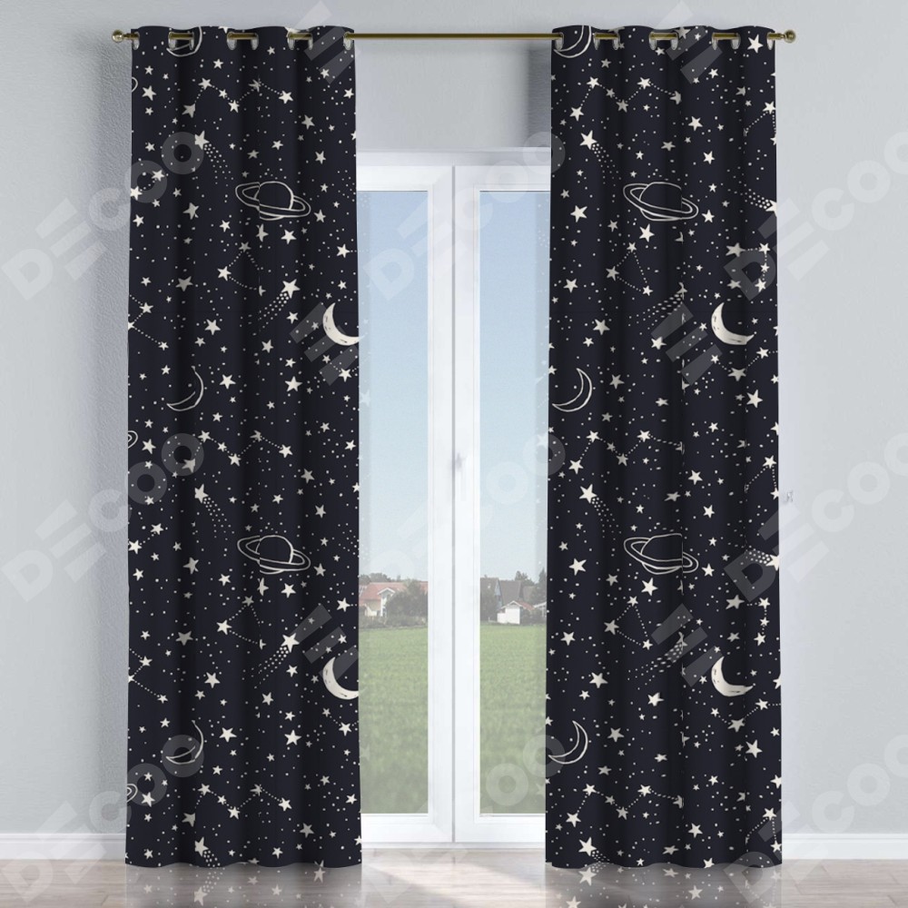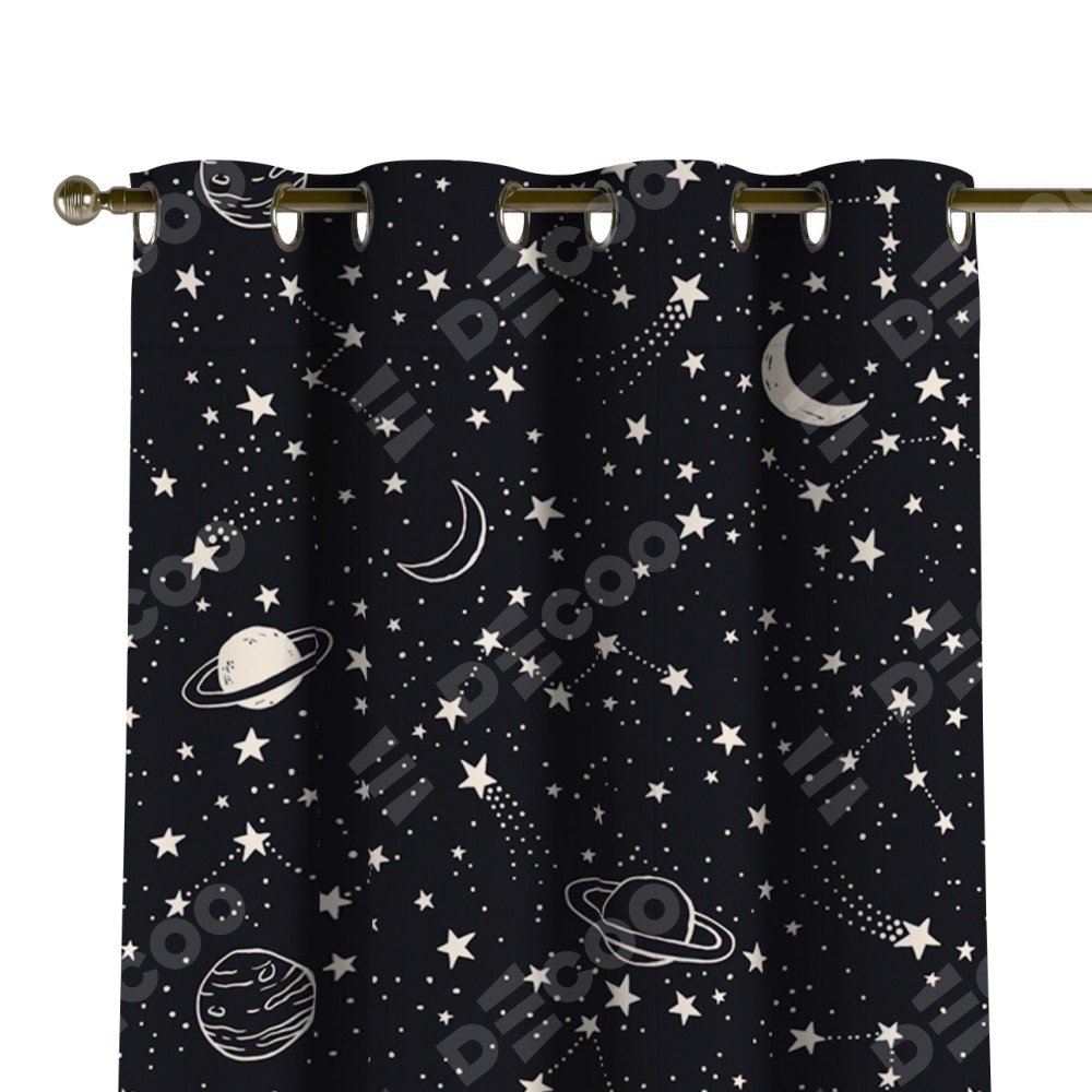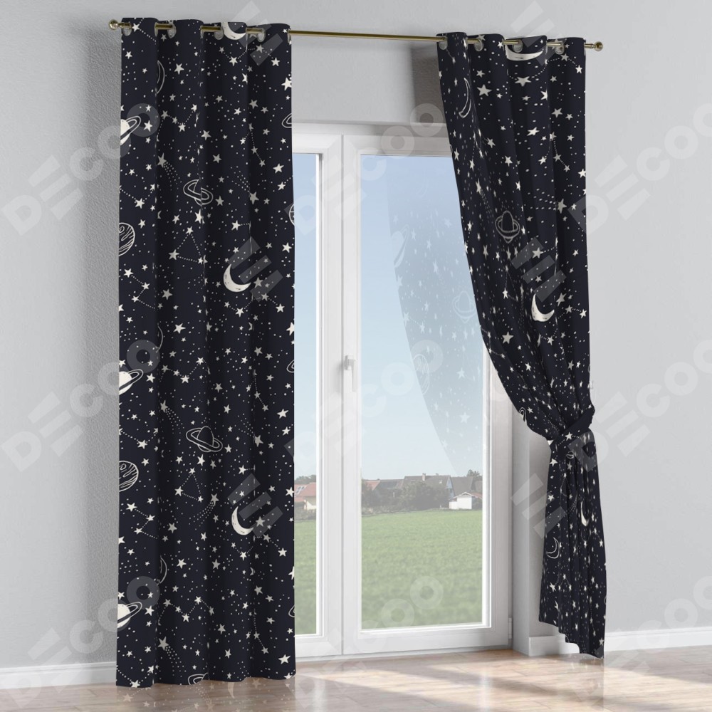 Комплект прямых штор, от производителя «Cortin», пошиты из ткани блэкаут с нанесением сублимационной печати «Глубокий космос». Данная модель пошита на люверсах, комплектуется на выбор круглым карнизом и подходит для монтажа на стену или потолок. Прямые шторы на люверсах шьются по стандарту с коэффициентом 1/2 (на 100 см. ширины проёма 200 см. ширины ткани), отличительным преимуществом данной модели является простой способ монтажа. Достаточно повесить ее на трубу и штора готова!