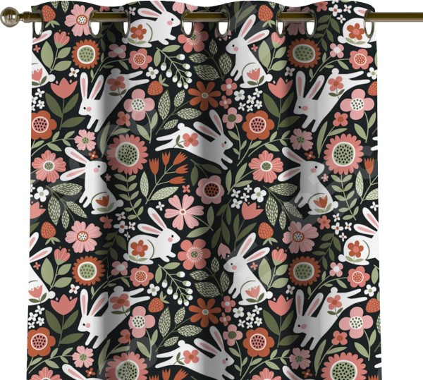 Комплект прямых штор, от производителя «Cortin», пошиты из ткани блэкаут с нанесением сублимационной печати «Зайчики в цветнике». Данная модель пошита на люверсах, комплектуется на выбор круглым карнизом и подходит для монтажа на стену или потолок. Прямые шторы на люверсах шьются по стандарту с коэффициентом 1/2 (на 100 см. ширины проёма 200 см. ширины ткани), отличительным преимуществом данной модели является простой способ монтажа. Достаточно повесить ее на трубу и штора готова!