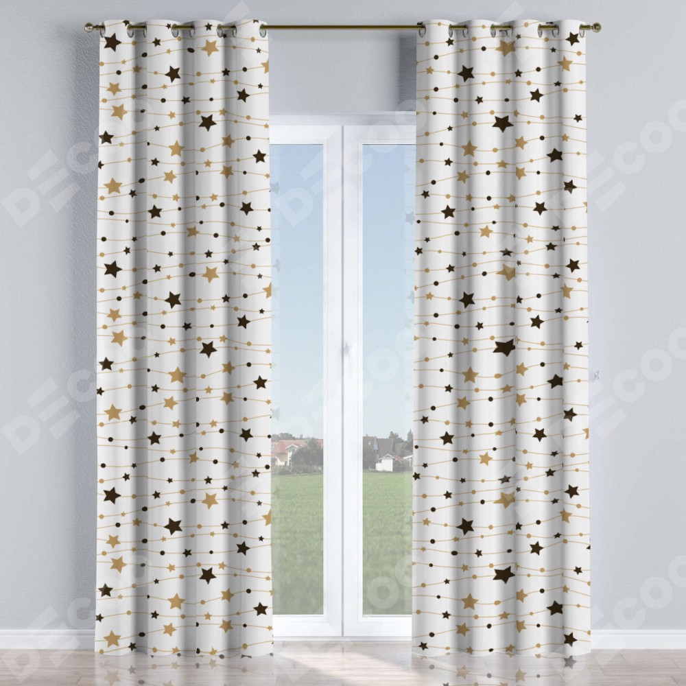 Комплект прямых штор, от производителя «Cortin», пошиты из ткани блэкаут с нанесением сублимационной печати «Звездная нить». Данная модель пошита на люверсах, комплектуется на выбор круглым карнизом и подходит для монтажа на стену или потолок. Прямые шторы на люверсах шьются по стандарту с коэффициентом 1/2 (на 100 см. ширины проёма 200 см. ширины ткани), отличительным преимуществом данной модели является простой способ монтажа. Достаточно повесить ее на трубу и штора готова!