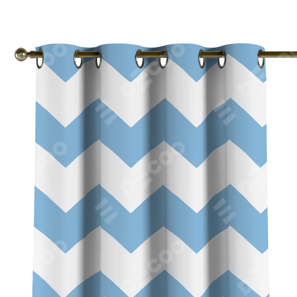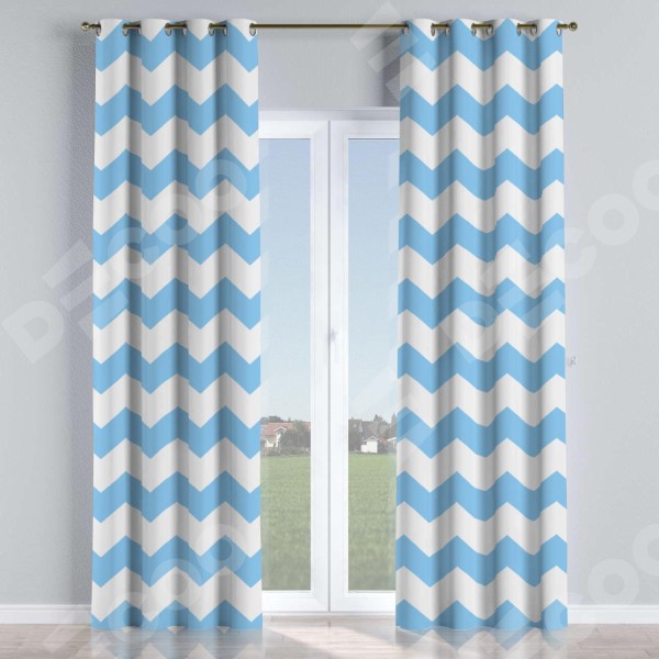 Комплект прямых штор, от производителя «Cortin», пошиты из ткани блэкаут с нанесением сублимационной печати «Зигзаг крупный». Данная модель пошита на люверсах, комплектуется на выбор круглым карнизом и подходит для монтажа на стену или потолок. Прямые шторы на люверсах шьются по стандарту с коэффициентом 1/2 (на 100 см. ширины проёма 200 см. ширины ткани), отличительным преимуществом данной модели является простой способ монтажа. Достаточно повесить ее на трубу и штора готова!