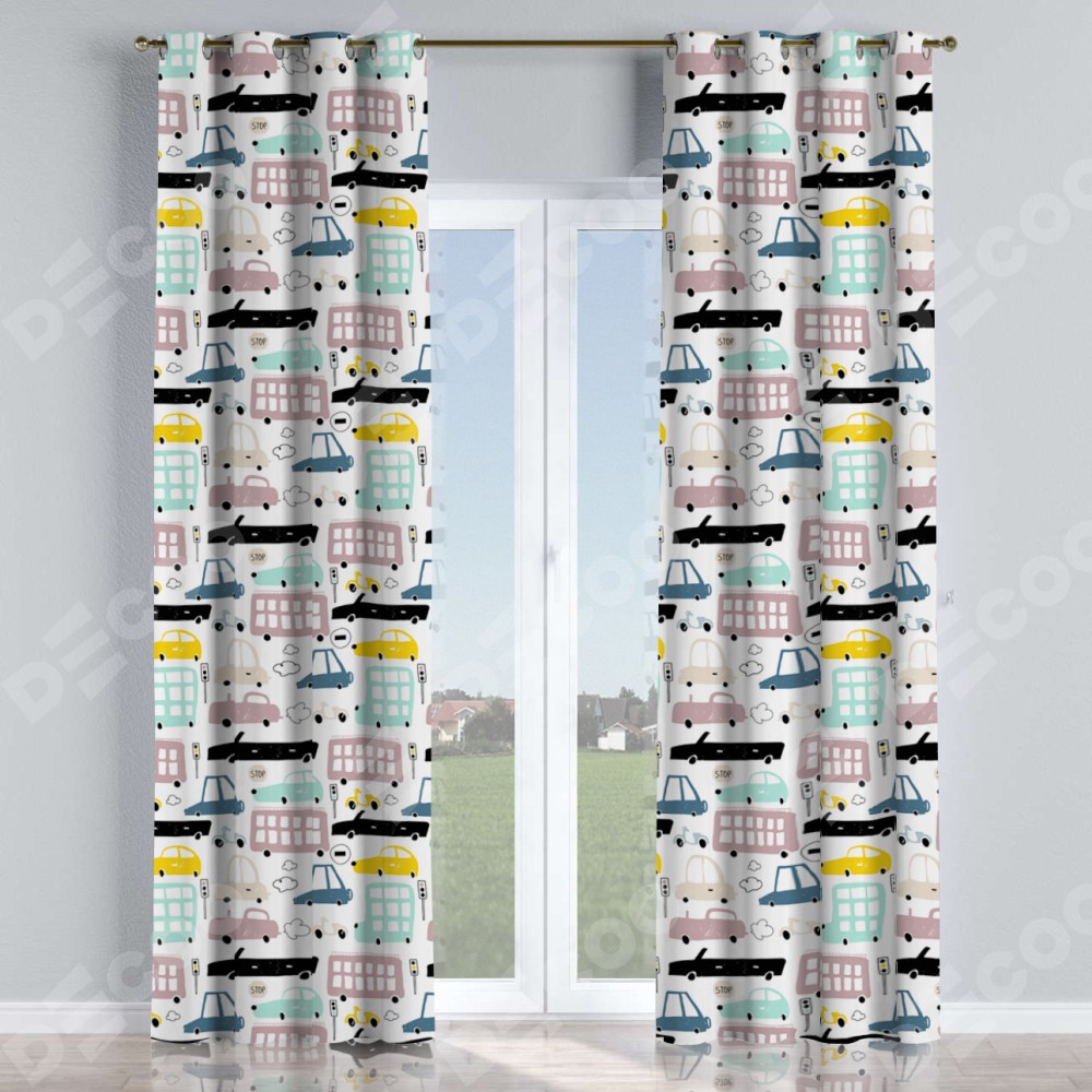 Комплект прямых штор, от производителя «Cortin», пошиты из ткани блэкаут с нанесением сублимационной печати «Красочный трафик». Данная модель пошита на люверсах, комплектуется на выбор круглым карнизом и подходит для монтажа на стену или потолок. Прямые шторы на люверсах шьются по стандарту с коэффициентом 1/2 (на 100 см. ширины проёма 200 см. ширины ткани), отличительным преимуществом данной модели является простой способ монтажа. Достаточно повесить ее на трубу и штора готова!