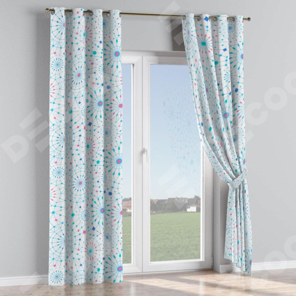 Комплект прямых штор, от производителя «Cortin», пошиты из ткани блэкаут с нанесением сублимационной печати «Круги и линии». Данная модель пошита на люверсах, комплектуется на выбор круглым карнизом и подходит для монтажа на стену или потолок. Прямые шторы на люверсах шьются по стандарту с коэффициентом 1/2 (на 100 см. ширины проёма 200 см. ширины ткани), отличительным преимуществом данной модели является простой способ монтажа. Достаточно повесить ее на трубу и штора готова!