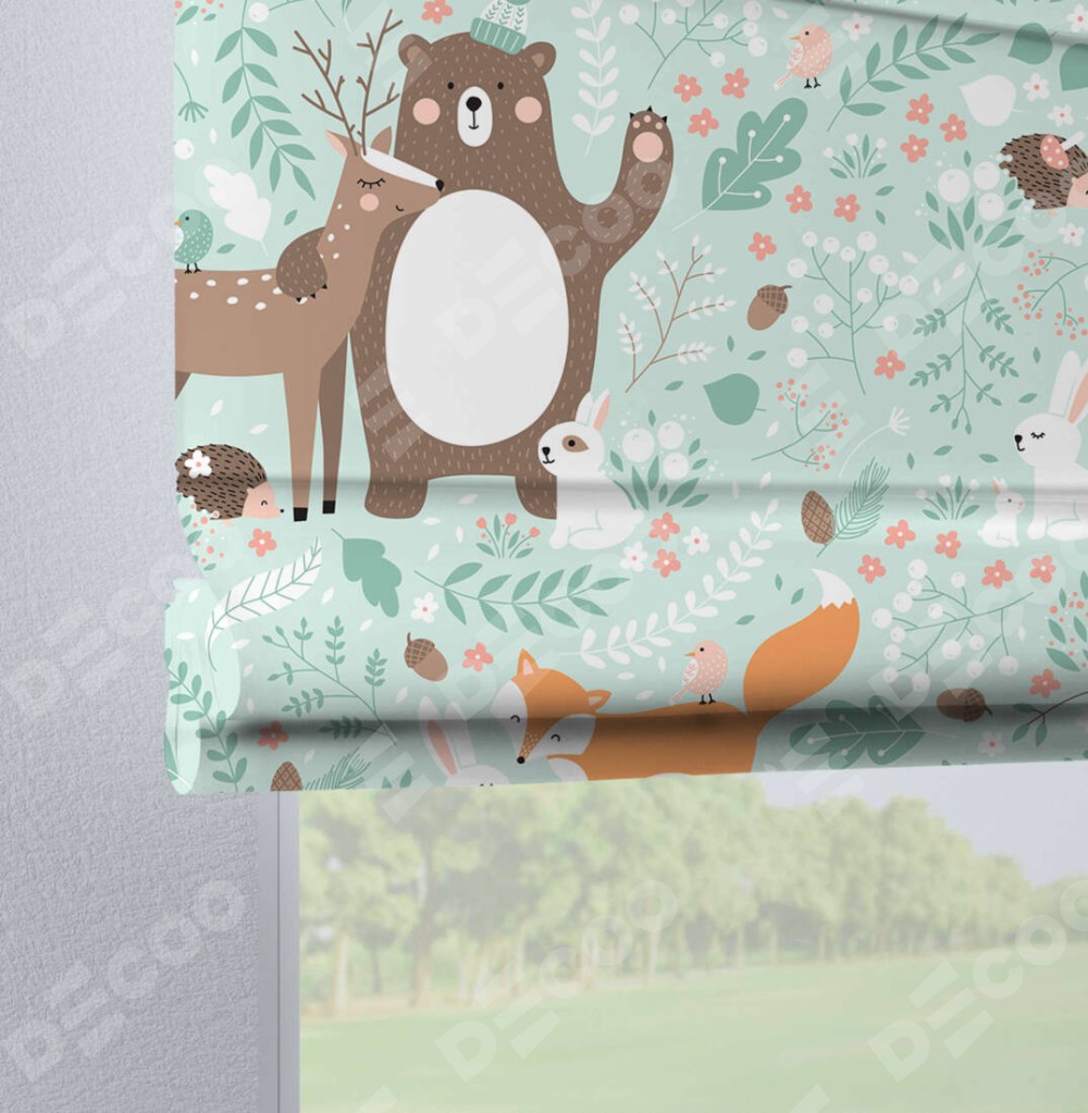Римская штора «Кортин» на петлях «Лесные друзья»