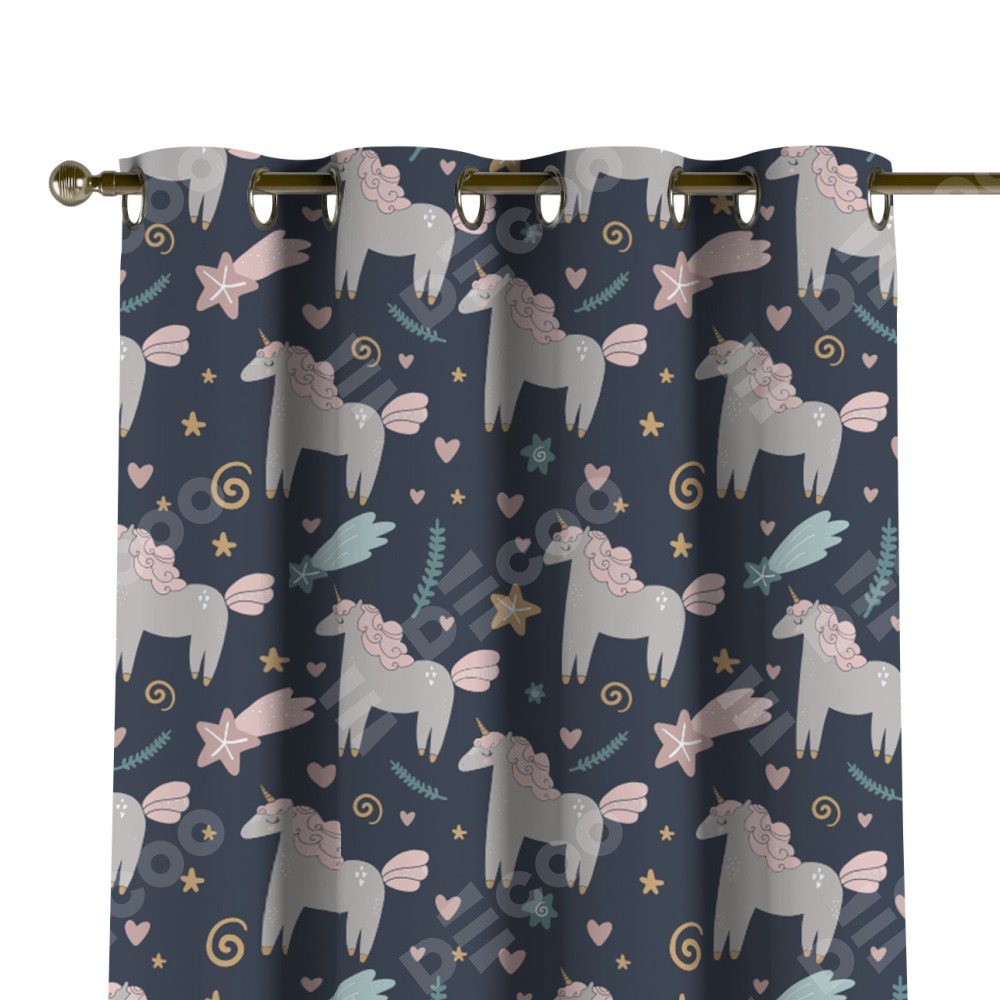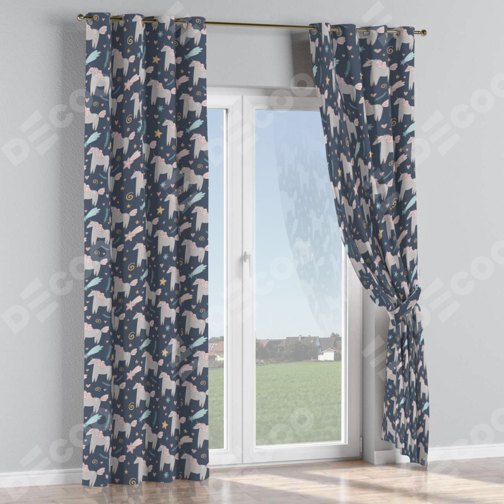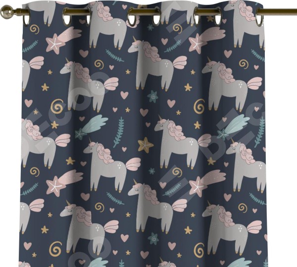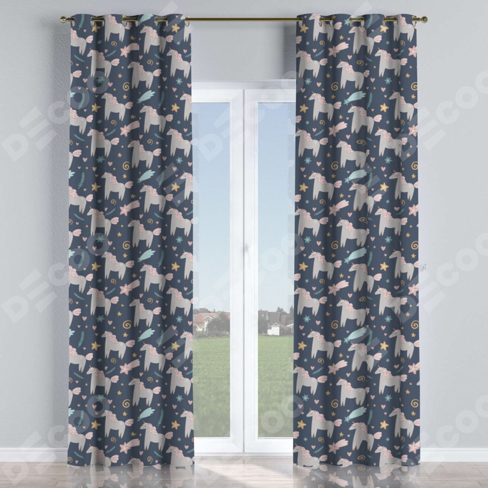 Комплект прямых штор, от производителя «Cortin», пошиты из ткани блэкаут с нанесением сублимационной печати «Милые единороги». Данная модель пошита на люверсах, комплектуется на выбор круглым карнизом и подходит для монтажа на стену или потолок. Прямые шторы на люверсах шьются по стандарту с коэффициентом 1/2 (на 100 см. ширины проёма 200 см. ширины ткани), отличительным преимуществом данной модели является простой способ монтажа. Достаточно повесить ее на трубу и штора готова!