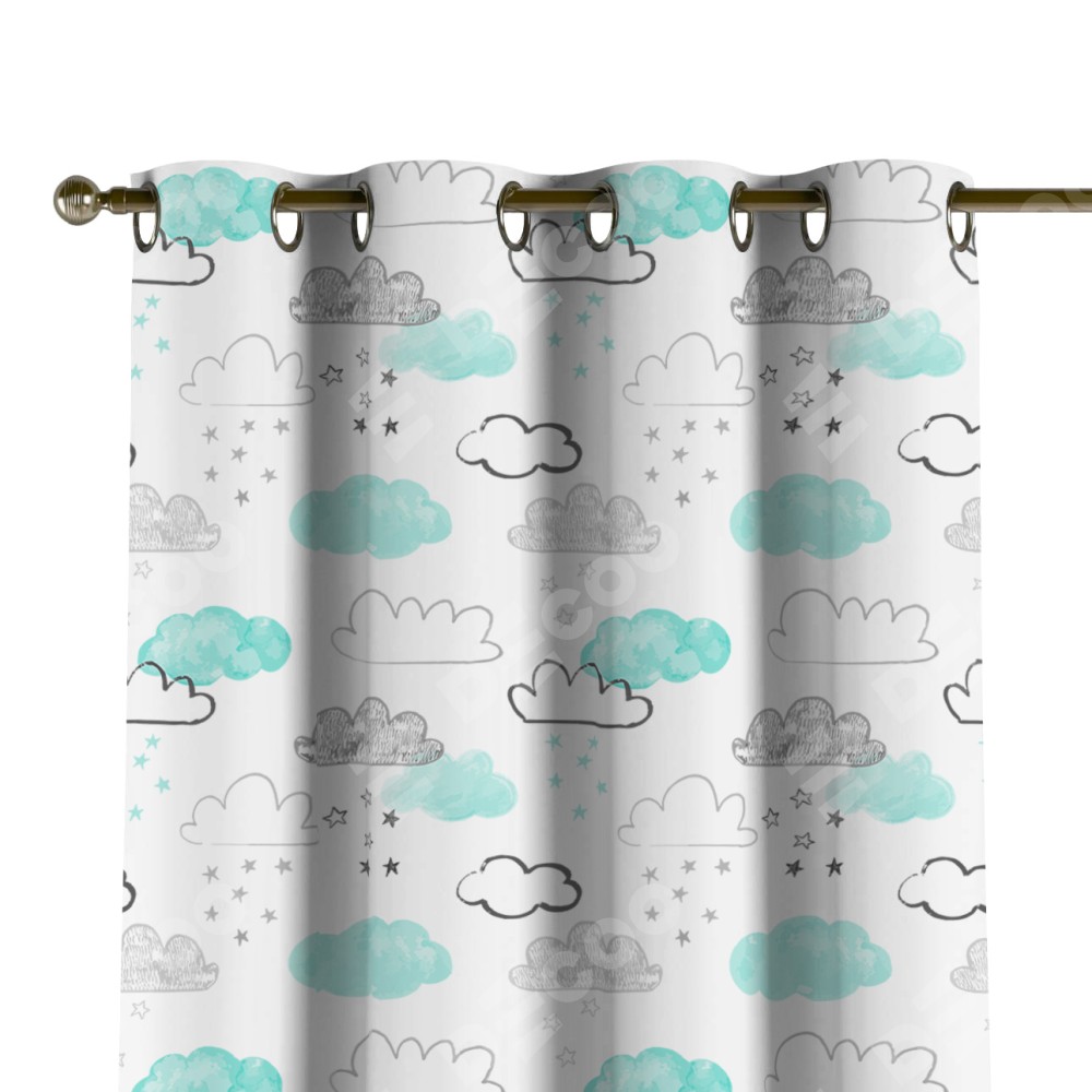 Комплект прямых штор, от производителя «Cortin», пошиты из ткани блэкаут с нанесением сублимационной печати «Облака и звёзды». Данная модель пошита на люверсах, комплектуется на выбор круглым карнизом и подходит для монтажа на стену или потолок. Прямые шторы на люверсах шьются по стандарту с коэффициентом 1/2 (на 100 см. ширины проёма 200 см. ширины ткани), отличительным преимуществом данной модели является простой способ монтажа. Достаточно повесить ее на трубу и штора готова!