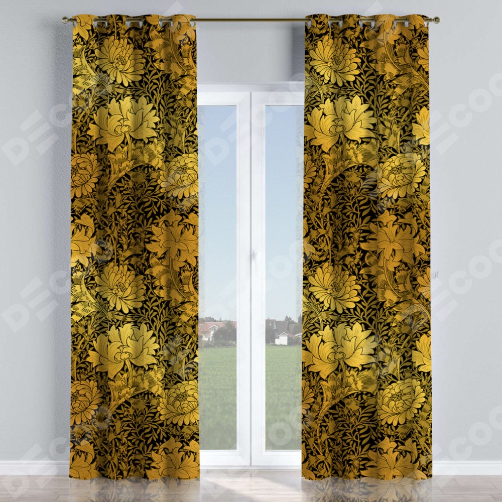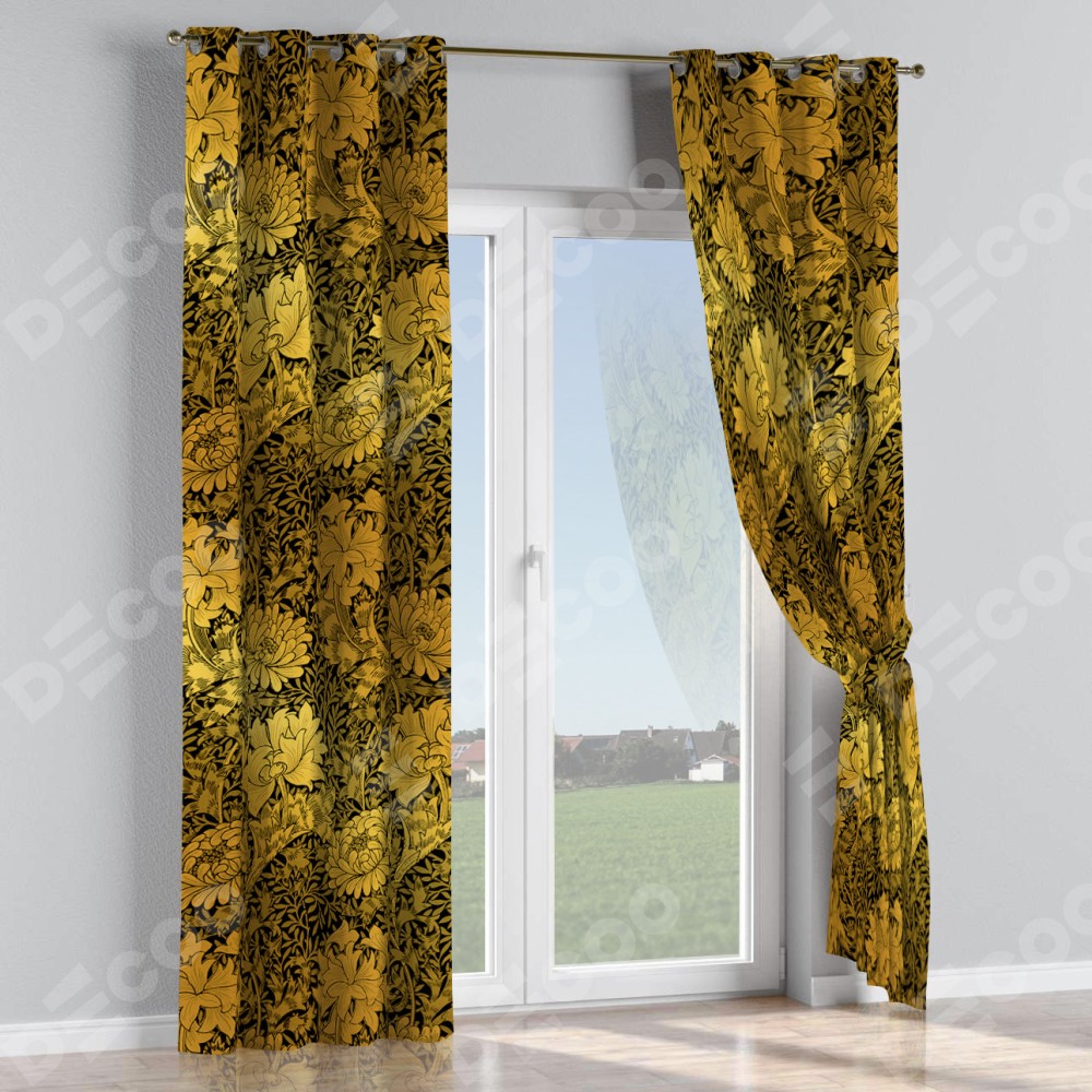 Комплект прямых штор, от производителя «Cortin», пошиты из ткани блэкаут с нанесением сублимационной печати «Ремикс морриса». Данная модель пошита на люверсах, комплектуется на выбор круглым карнизом и подходит для монтажа на стену или потолок. Прямые шторы на люверсах шьются по стандарту с коэффициентом 1/2 (на 100 см. ширины проёма 200 см. ширины ткани), отличительным преимуществом данной модели является простой способ монтажа. Достаточно повесить ее на трубу и штора готова!