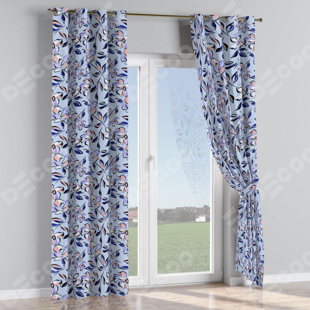 Комплект прямых штор, от производителя «Cortin», пошиты из ткани блэкаут с нанесением сублимационной печати «Цветочки и листочки». Данная модель пошита на люверсах, комплектуется на выбор круглым карнизом и подходит для монтажа на стену или потолок. Прямые шторы на люверсах шьются по стандарту с коэффициентом 1/2 (на 100 см. ширины проёма 200 см. ширины ткани), отличительным преимуществом данной модели является простой способ монтажа. Достаточно повесить ее на трубу и штора готова!