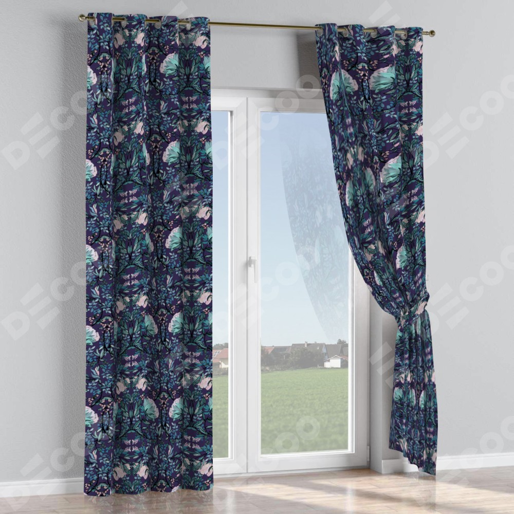 Комплект прямых штор, от производителя «Cortin», пошиты из ткани блэкаут с нанесением сублимационной печати «Цветочный индиго». Данная модель пошита на люверсах, комплектуется на выбор круглым карнизом и подходит для монтажа на стену или потолок. Прямые шторы на люверсах шьются по стандарту с коэффициентом 1/2 (на 100 см. ширины проёма 200 см. ширины ткани), отличительным преимуществом данной модели является простой способ монтажа. Достаточно повесить ее на трубу и штора готова!