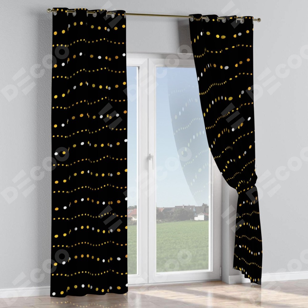 Комплект прямых штор, от производителя «Cortin», пошиты из ткани блэкаут с нанесением сублимационной печати «Яркие огоньки». Данная модель пошита на люверсах, комплектуется на выбор круглым карнизом и подходит для монтажа на стену или потолок. Прямые шторы на люверсах шьются по стандарту с коэффициентом 1/2 (на 100 см. ширины проёма 200 см. ширины ткани), отличительным преимуществом данной модели является простой способ монтажа. Достаточно повесить ее на трубу и штора готова!