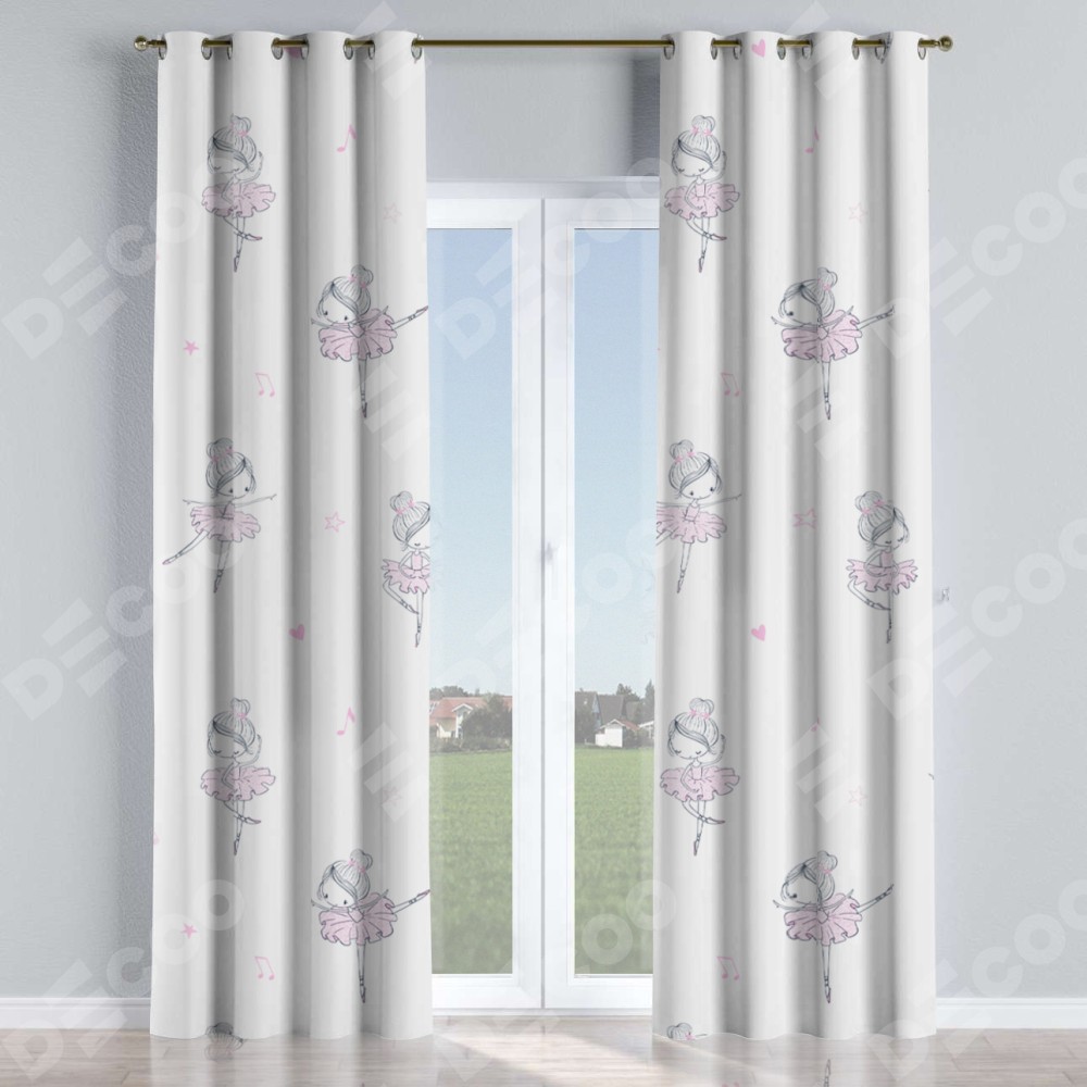 Комплект прямых штор, от производителя «Cortin», пошиты из ткани блэкаут с нанесением сублимационной печати «Маленькая балерина». Данная модель пошита на люверсах, комплектуется на выбор круглым карнизом и подходит для монтажа на стену или потолок. Прямые шторы на люверсах шьются по стандарту с коэффициентом 1/2 (на 100 см. ширины проёма 200 см. ширины ткани), отличительным преимуществом данной модели является простой способ монтажа. Достаточно повесить ее на трубу и штора готова!
