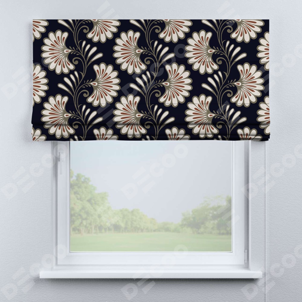 Римская штора производителя «Cortin», используется для проёма, пошита из ткани блэкаут с нанесением сублимационной печати «Бархатная ночь». Имеет универсальный механизм и подходит для монтажа: на потолок, на стену и в нишу.